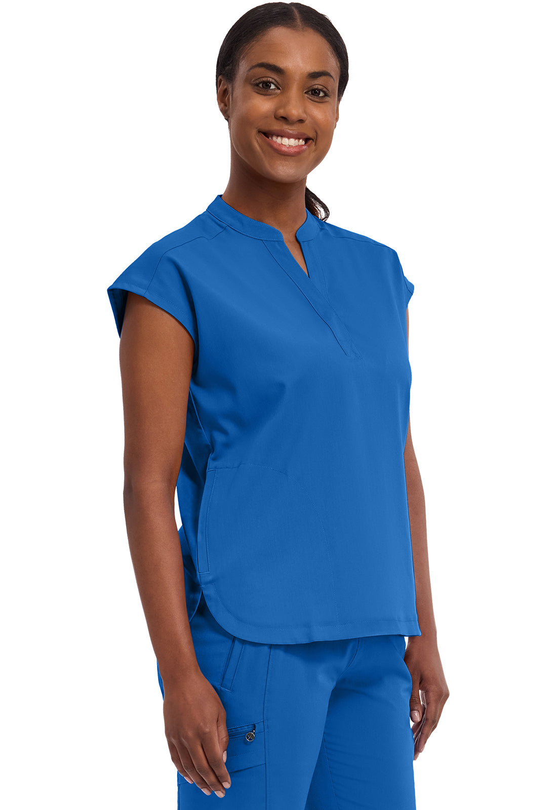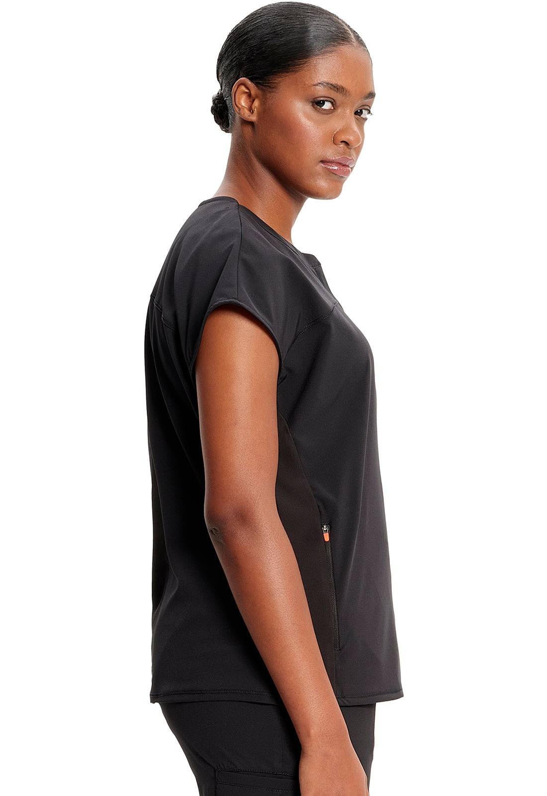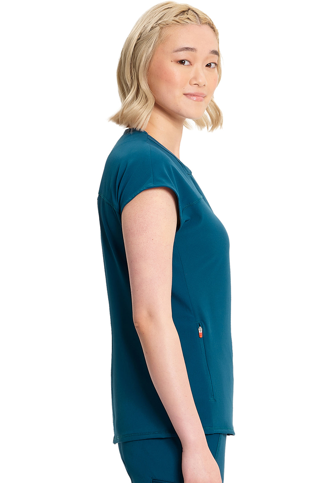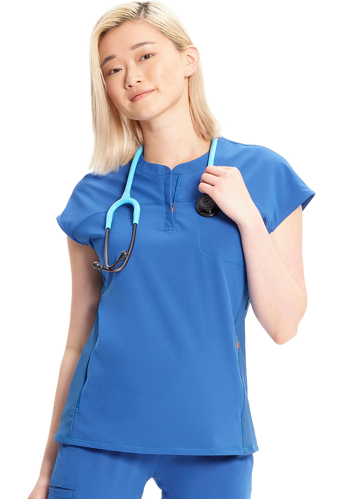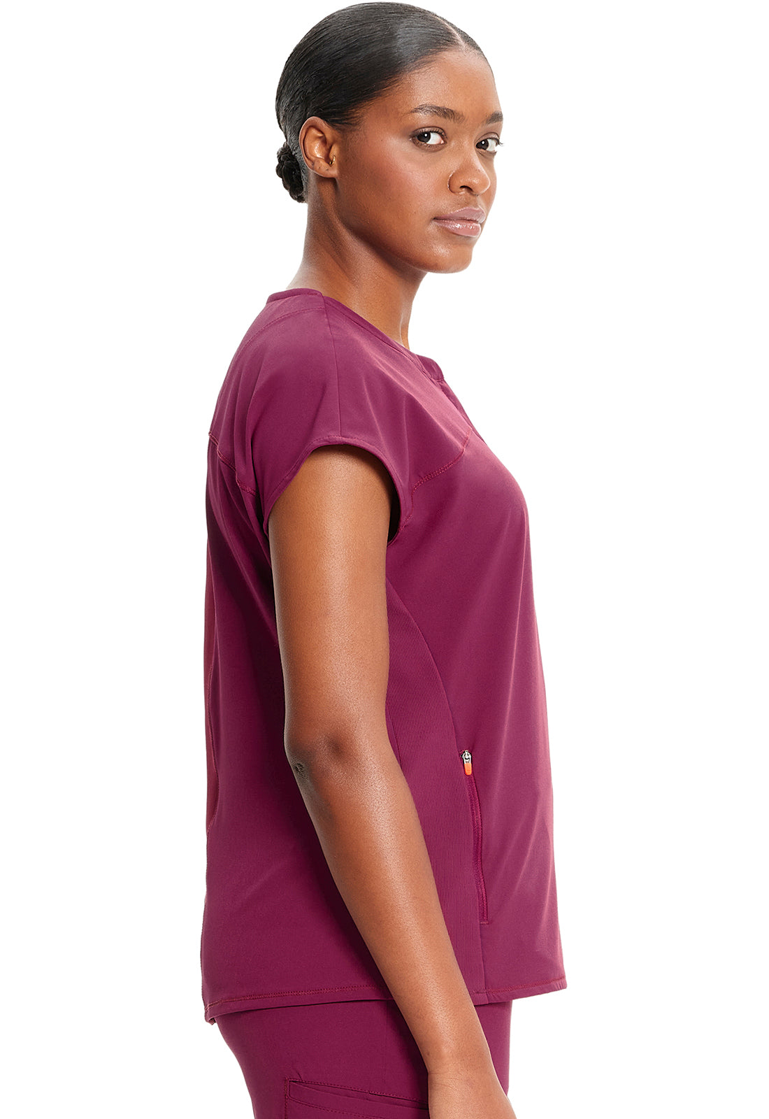 I received the scrub top I ordered right away & it’s stretch material very vibrant in colour I love it