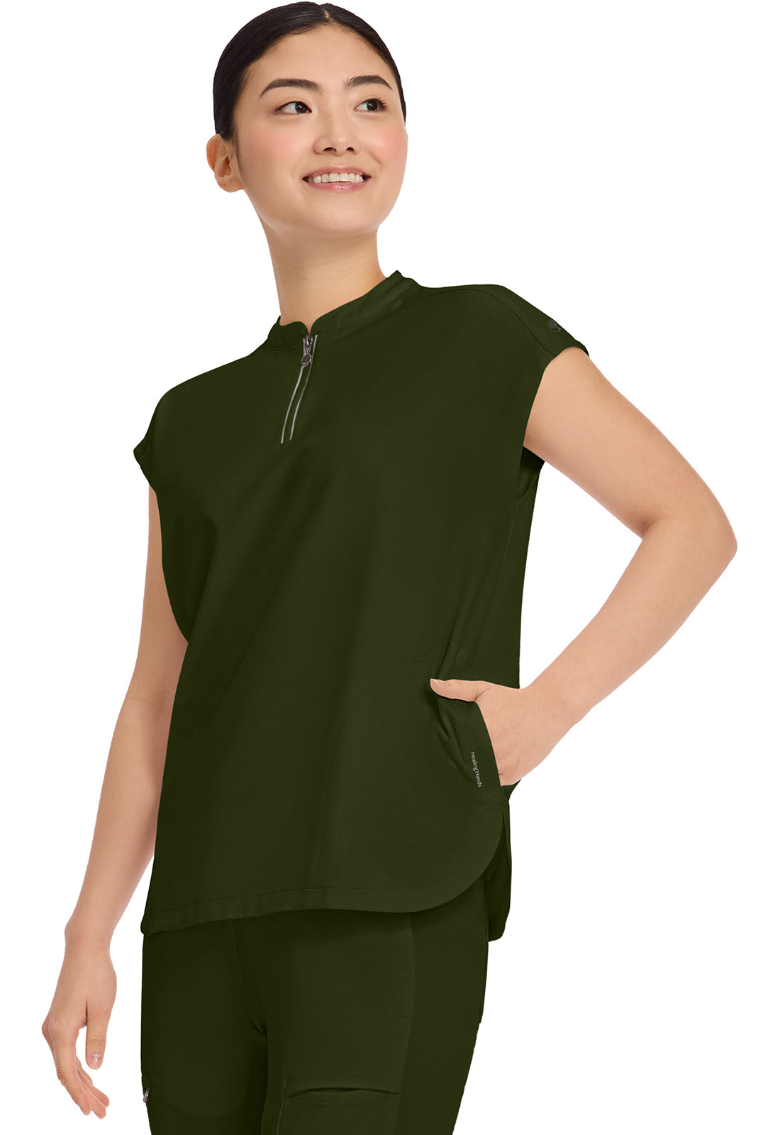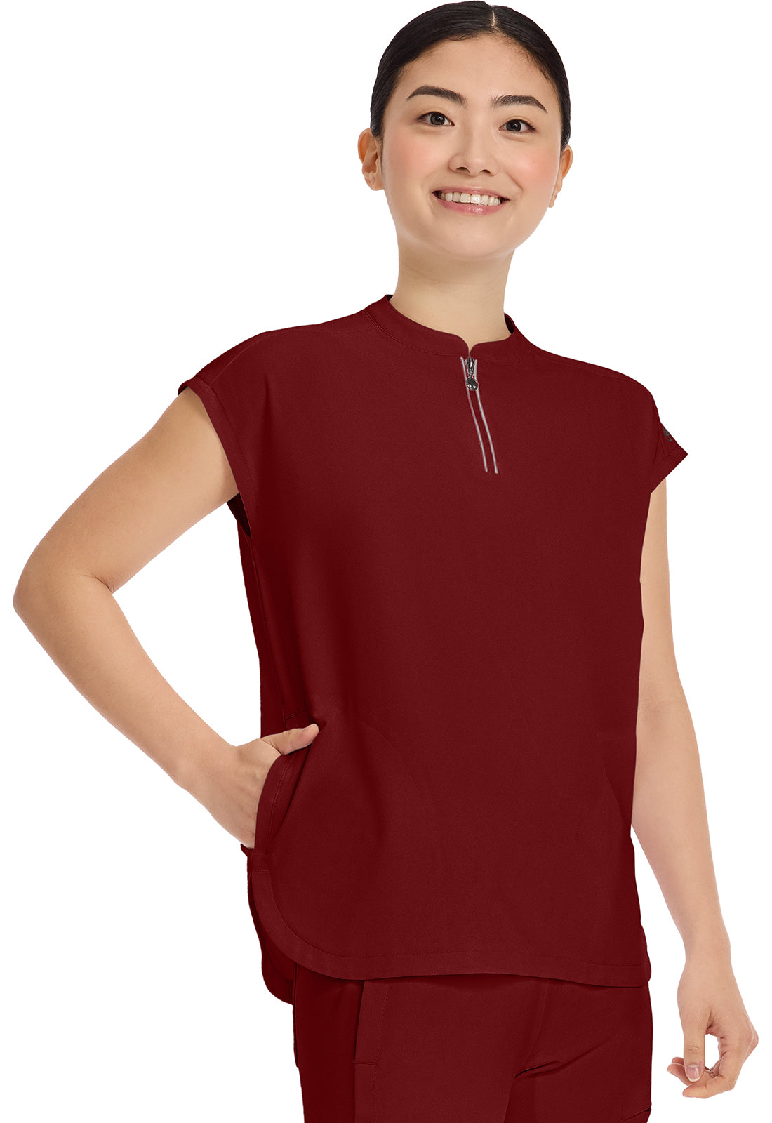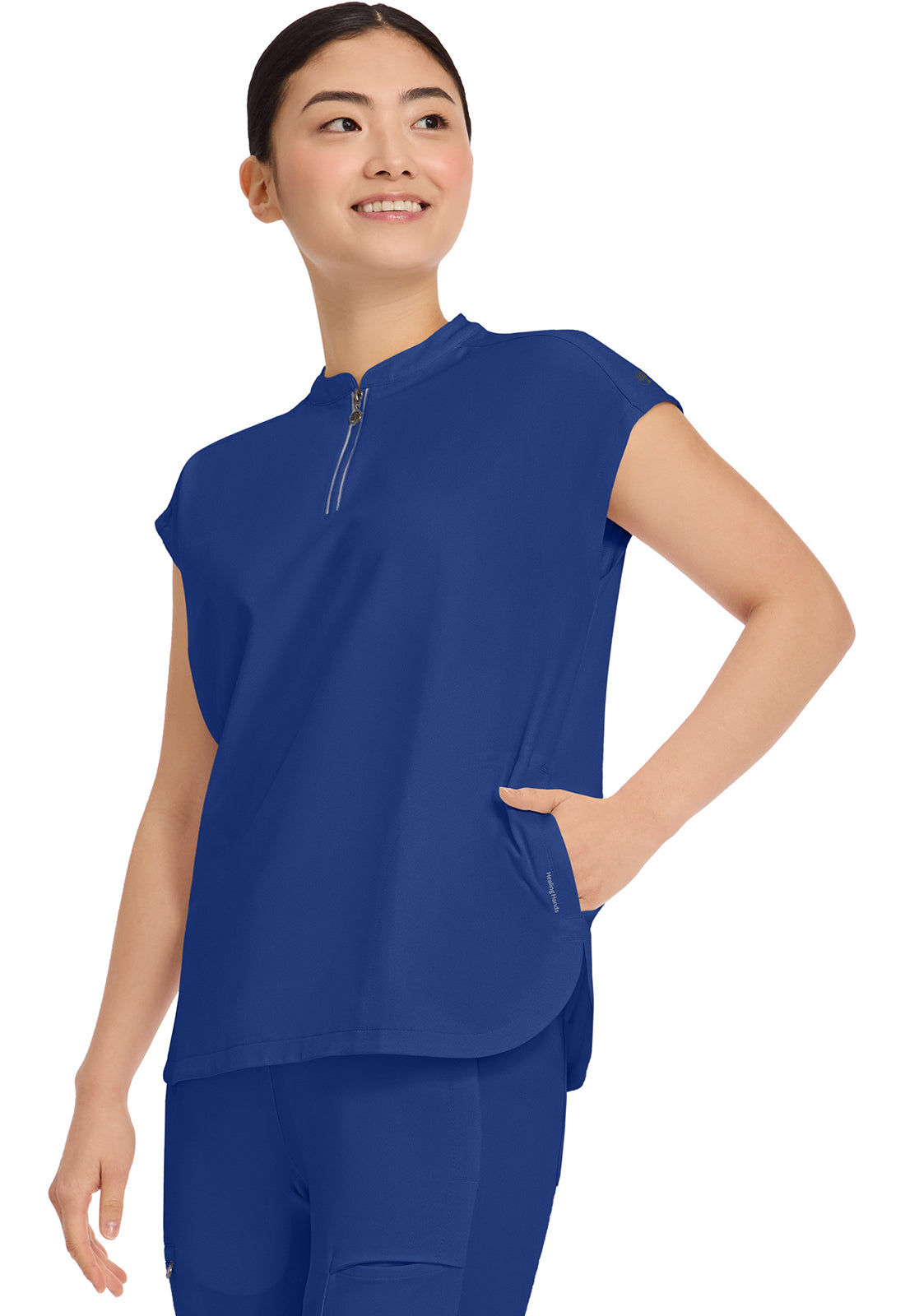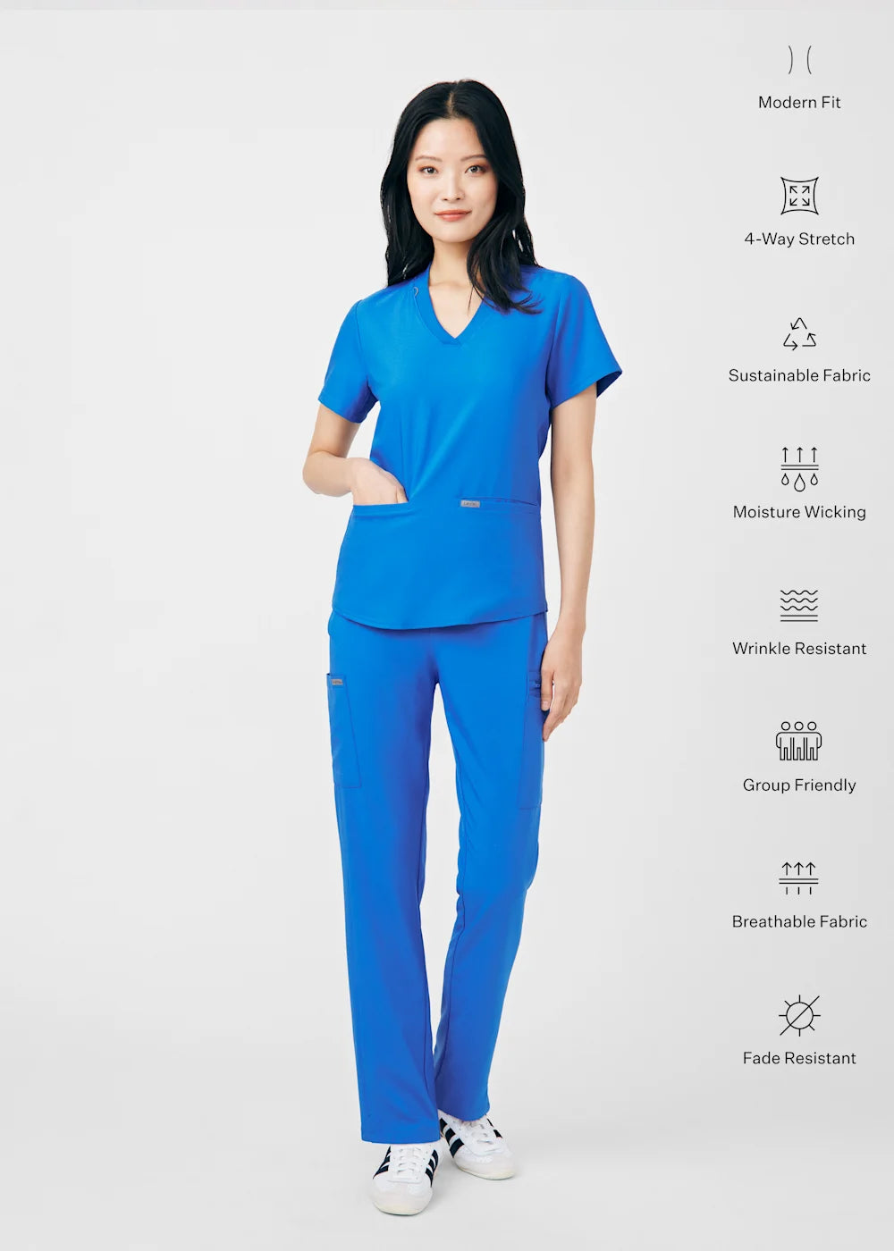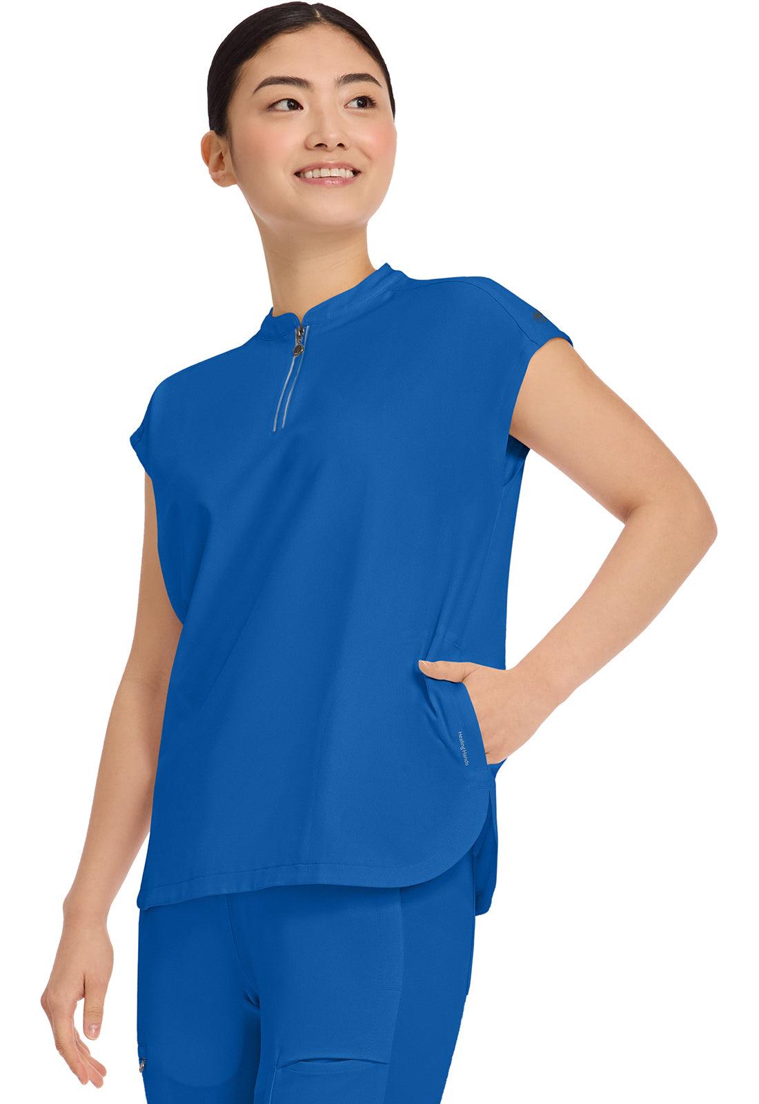 I received the scrub top I ordered right away & it’s stretch material very vibrant in colour I love it