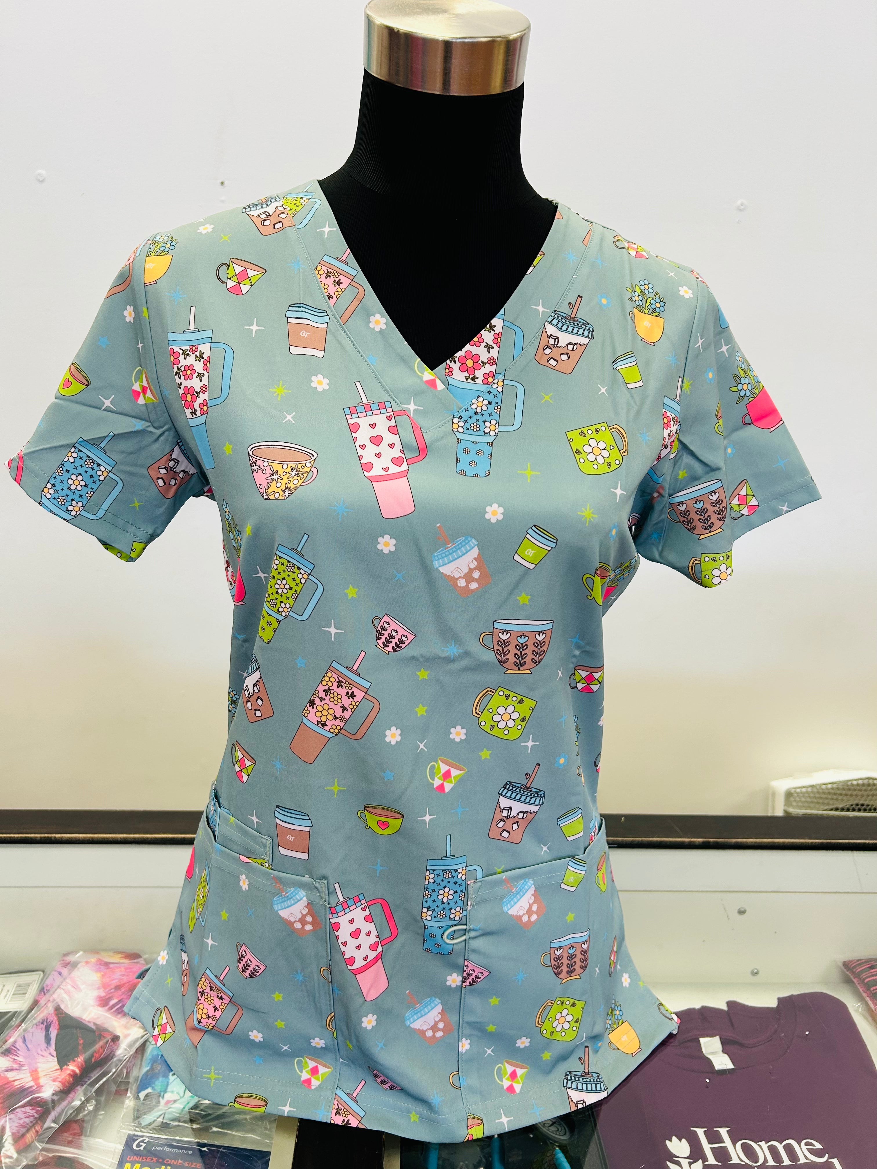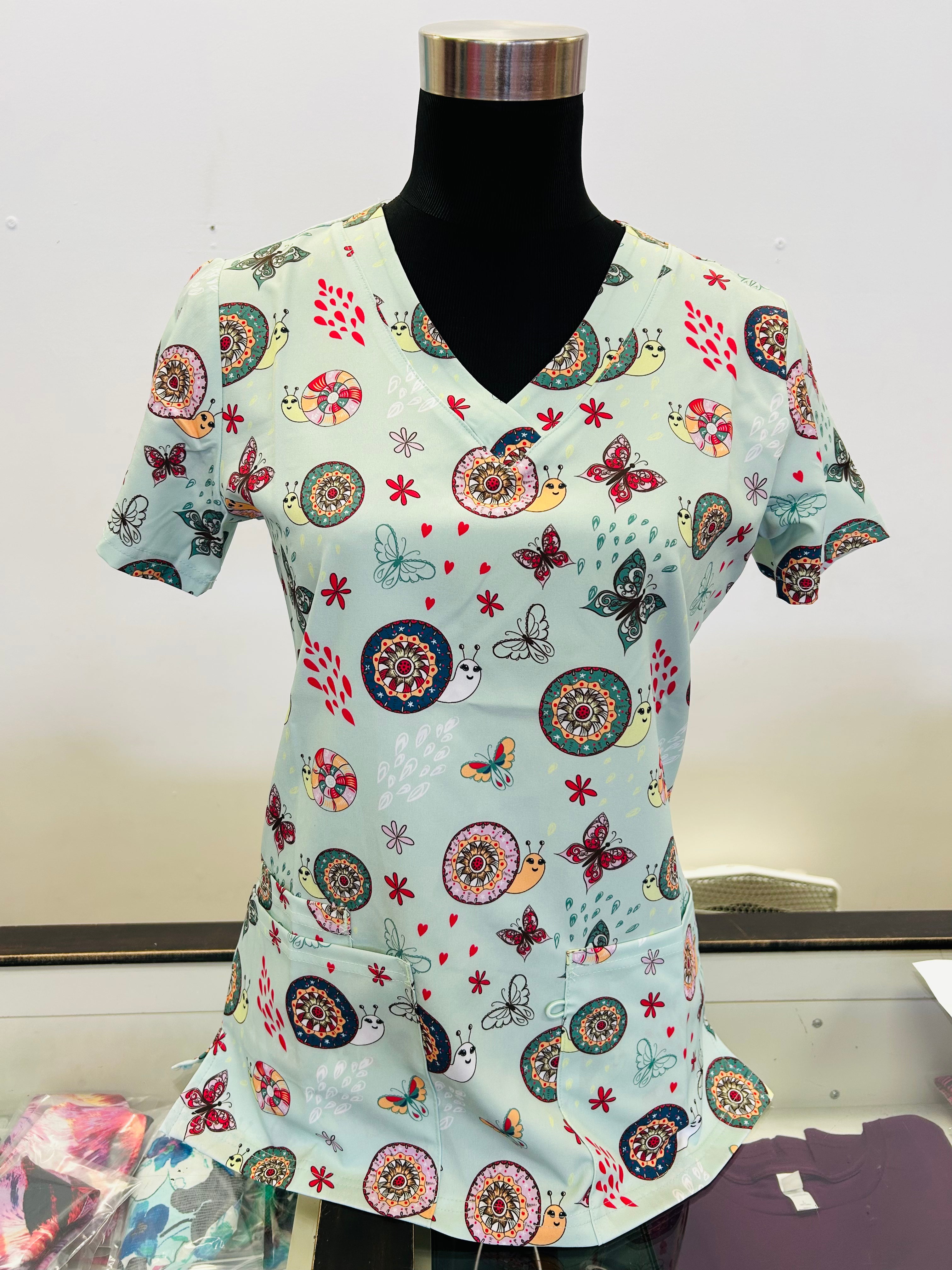 Printed Scrub Tops