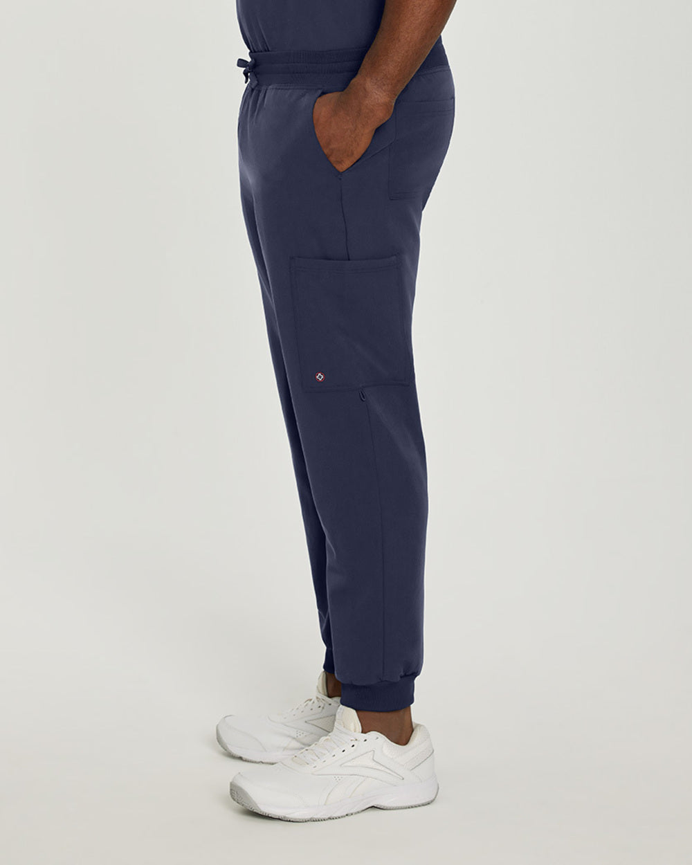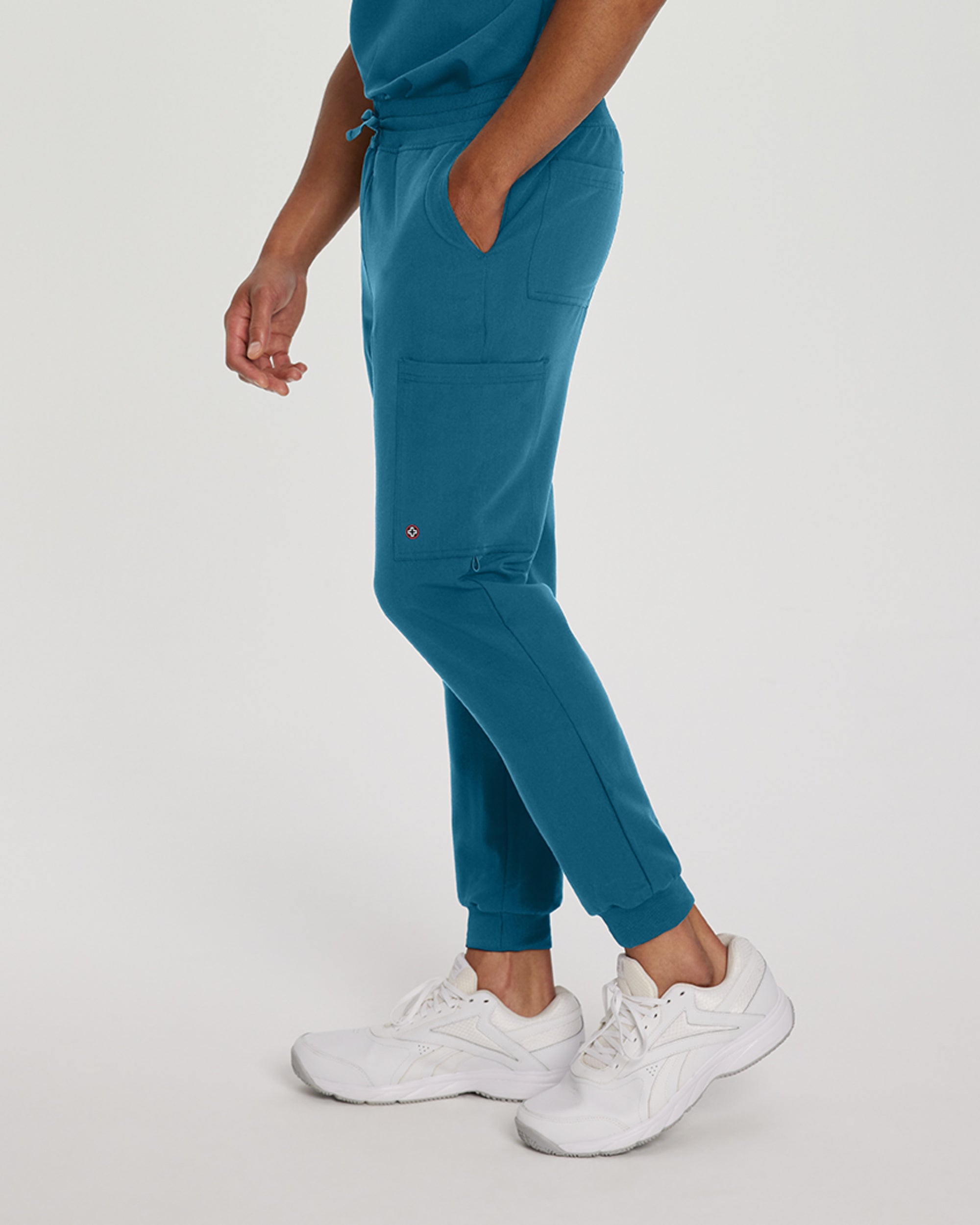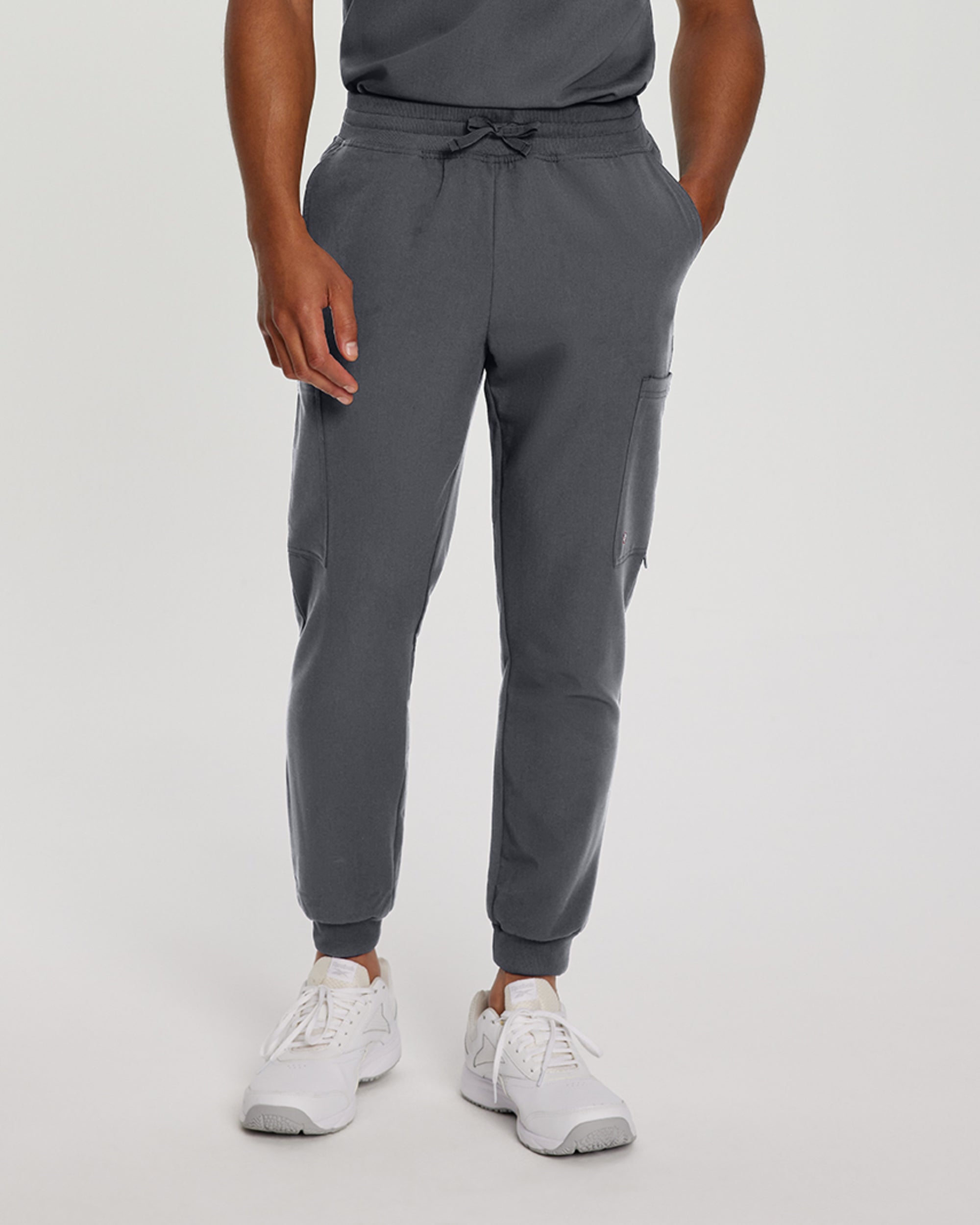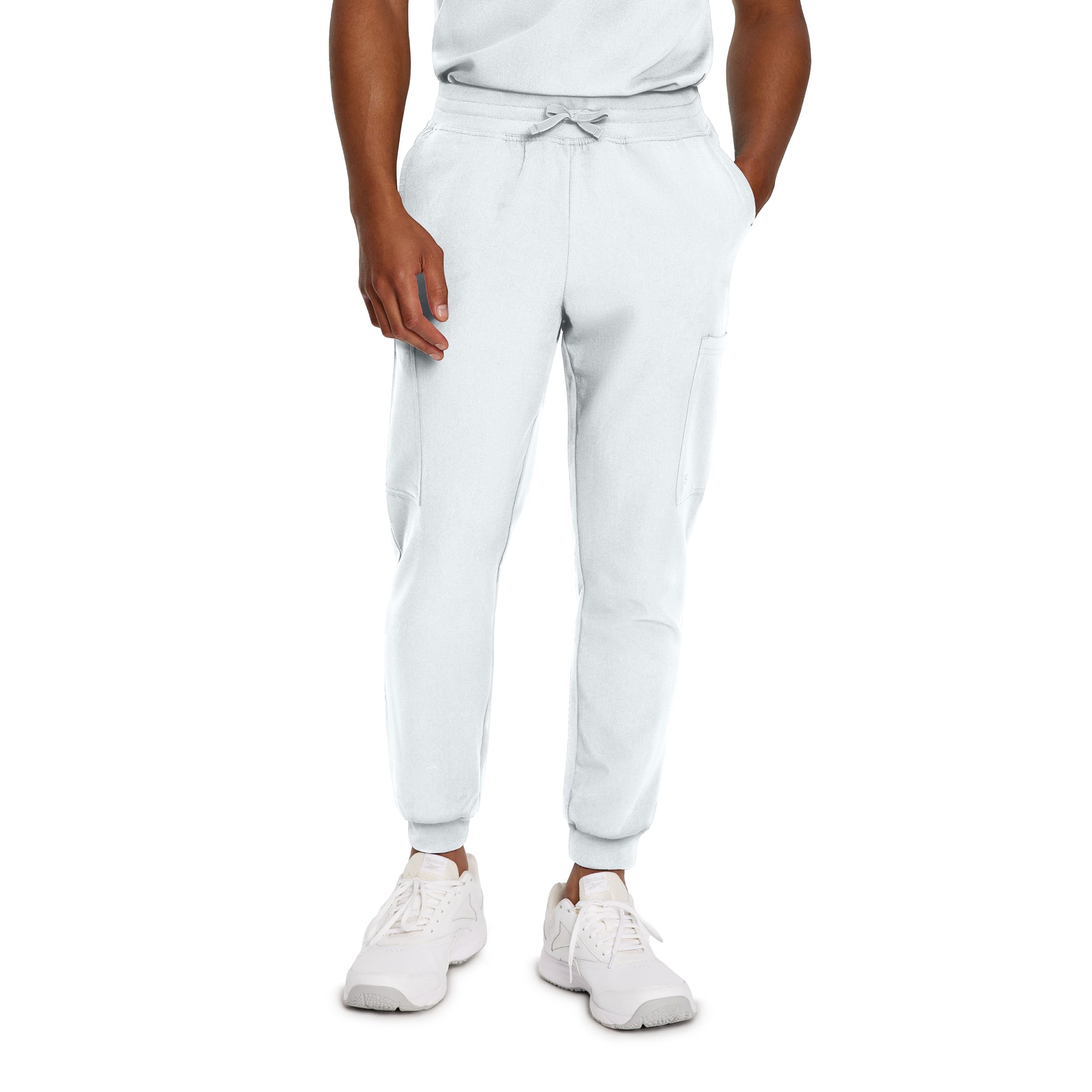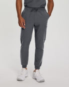 Stay comfortable and confident throughout your shift with the V-Tess men's jogger scrub pants. Featuring a mid-rise triple-elastic waistband with a drawstring, these joggers offer a secure and adjustable fit. Made from a breathable, super stretch fabric blend, they provide excellent flexibility and shape retention. The six well-placed pockets—including angled hip pockets, cargo pockets with a bungee loop, and back pockets—give you ample storage for essentials. Rib-knit cuffs and waistband enhance the contemporary fit, designed to contour your body and complement your shape. Easy to maintain with machine wash care. If your size is out of stock, reach out via chat for assistance.