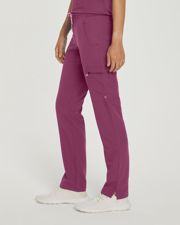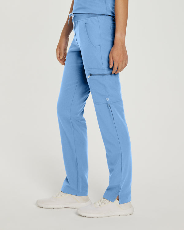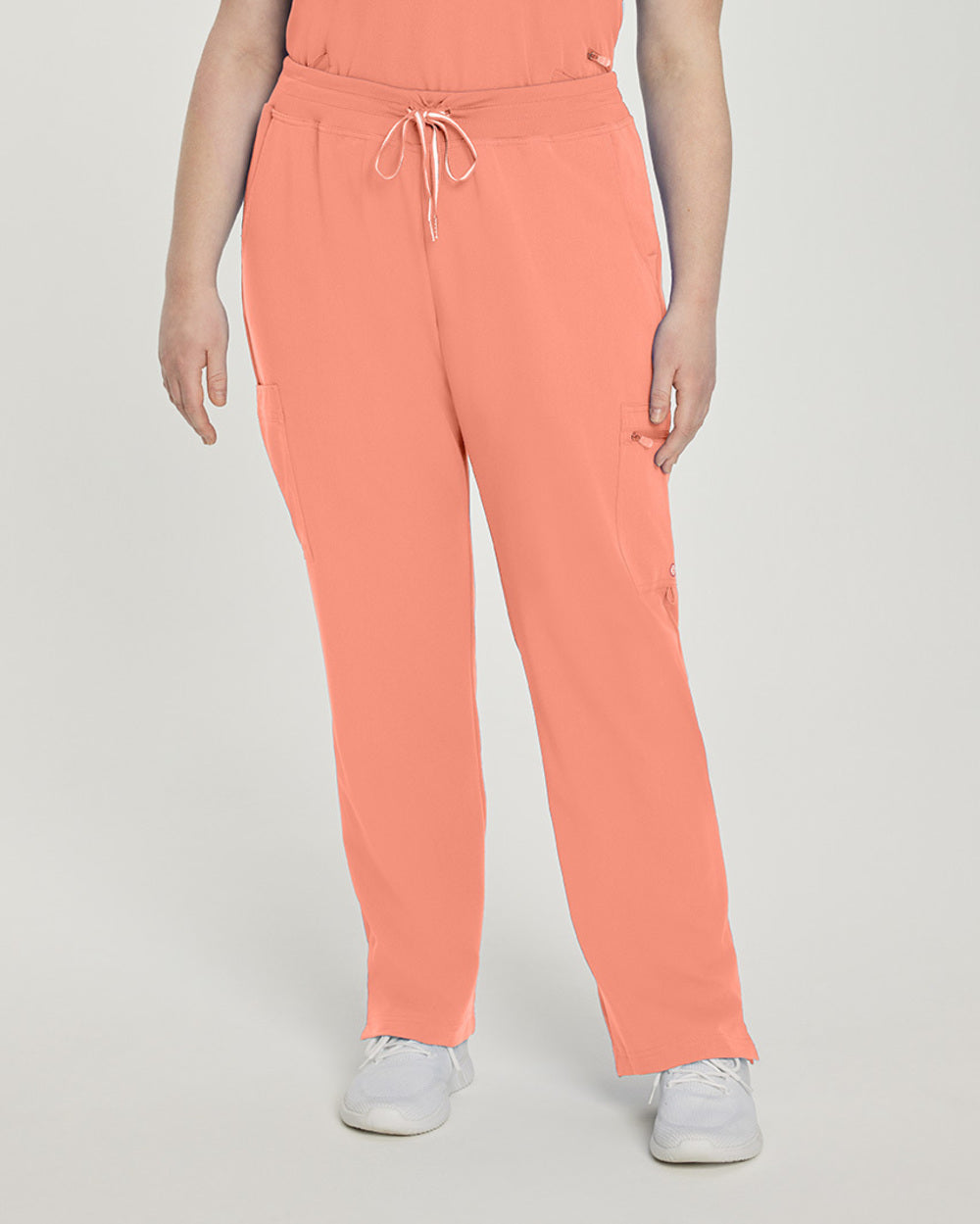 Our V-Tess women's straight-leg cargo scrub pants feature a breathable 4-way super stretch for maximum comfort and flexibility and vibrant colors that last wash after wash. V-Tess Women's Straight-Leg Cargo Scrub Pants are fade and wrinkle-resistant, have side vents for extra ease of movement, and have a low-rise jersey-knit elastic waist with a striped drawstring.