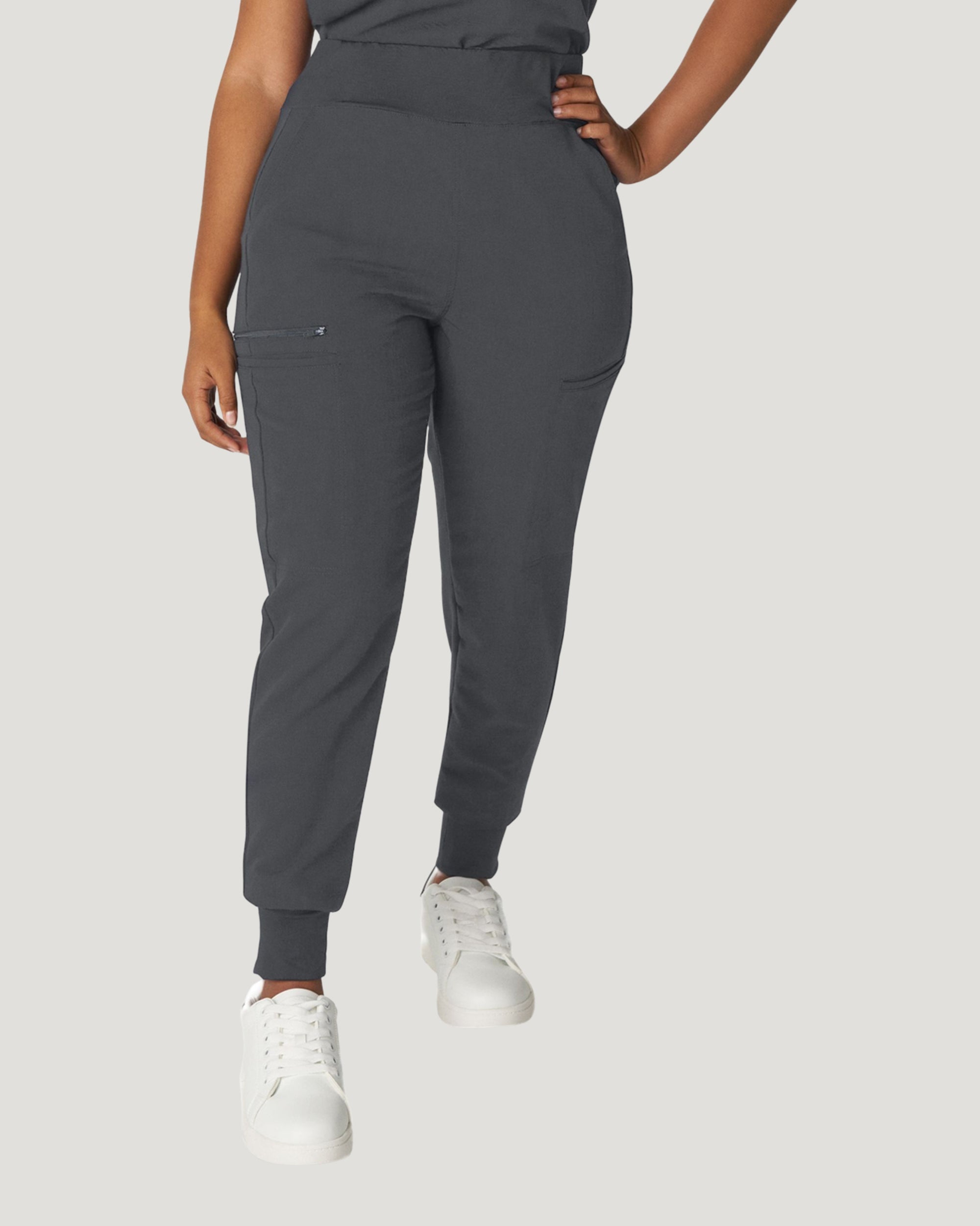 White Cross V-Tess Women's Jogger Pants with Jersey Knit Contrast 6 Pockets