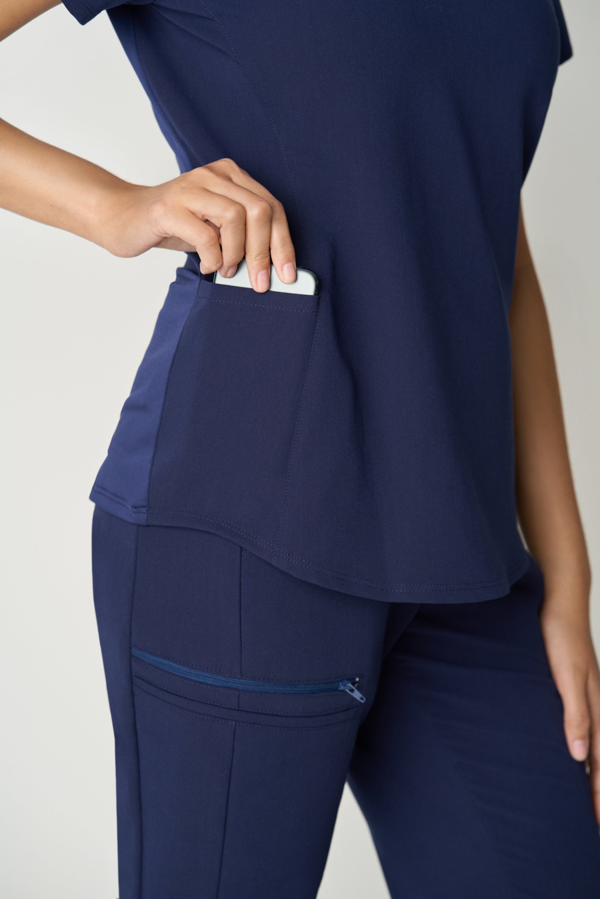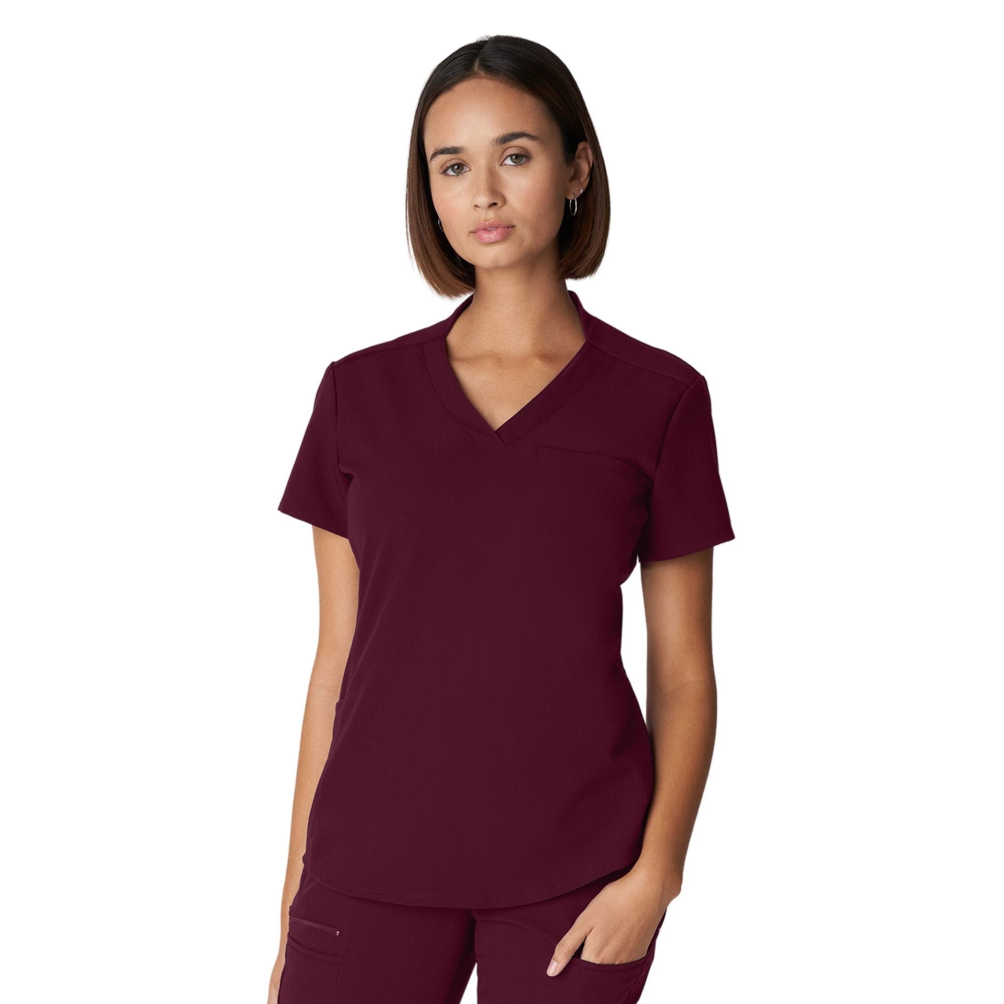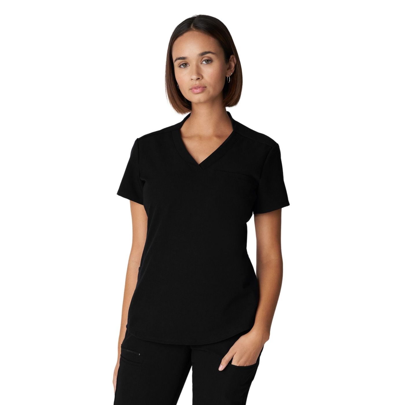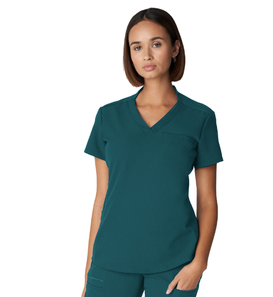 Introducing the Jersey Knit Contrast Top - a stylish, comfortable scrub top made from high-quality jersey knit fabric. Featuring a contrasting design, V-neck, short sleeves, side slits, and spacious pockets, this easy-to-maintain top is perfect for healthcare professionals. Available in various sizes and colors, order now to elevate your work wardrobe!