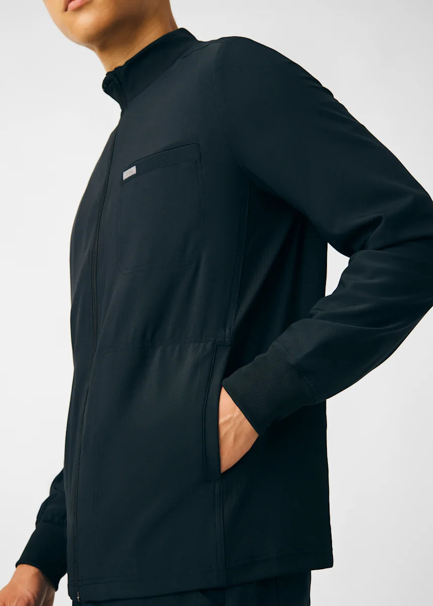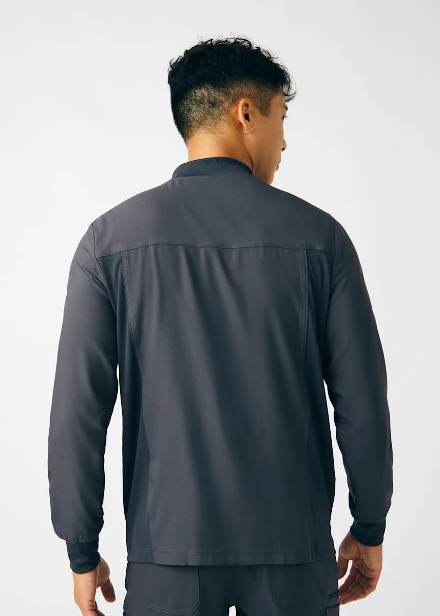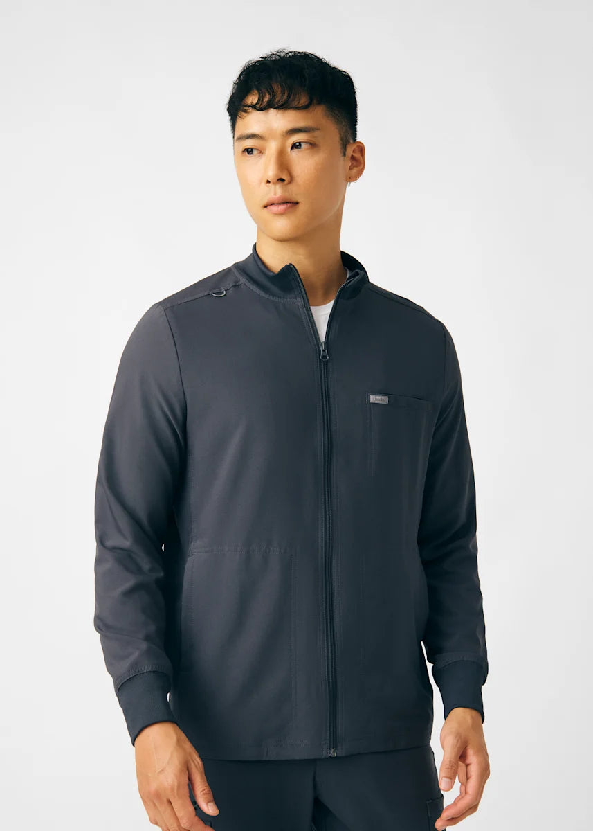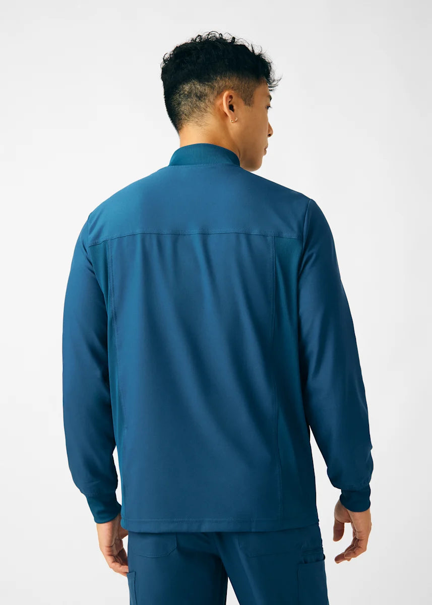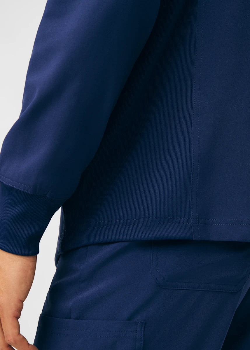 A Men's Fit zip front jacket that is not only comfortable, but will keep you warm all day. The rib knit mock neck collar, cuffs, and side panels offer a relaxed fit. Features ample amount of space for essential tools and accessories with 1 chest pocket, 2 large welt pockets, and an ID badge loop to keep your items organized. With all these features this jacket will become an essential item for your workday.