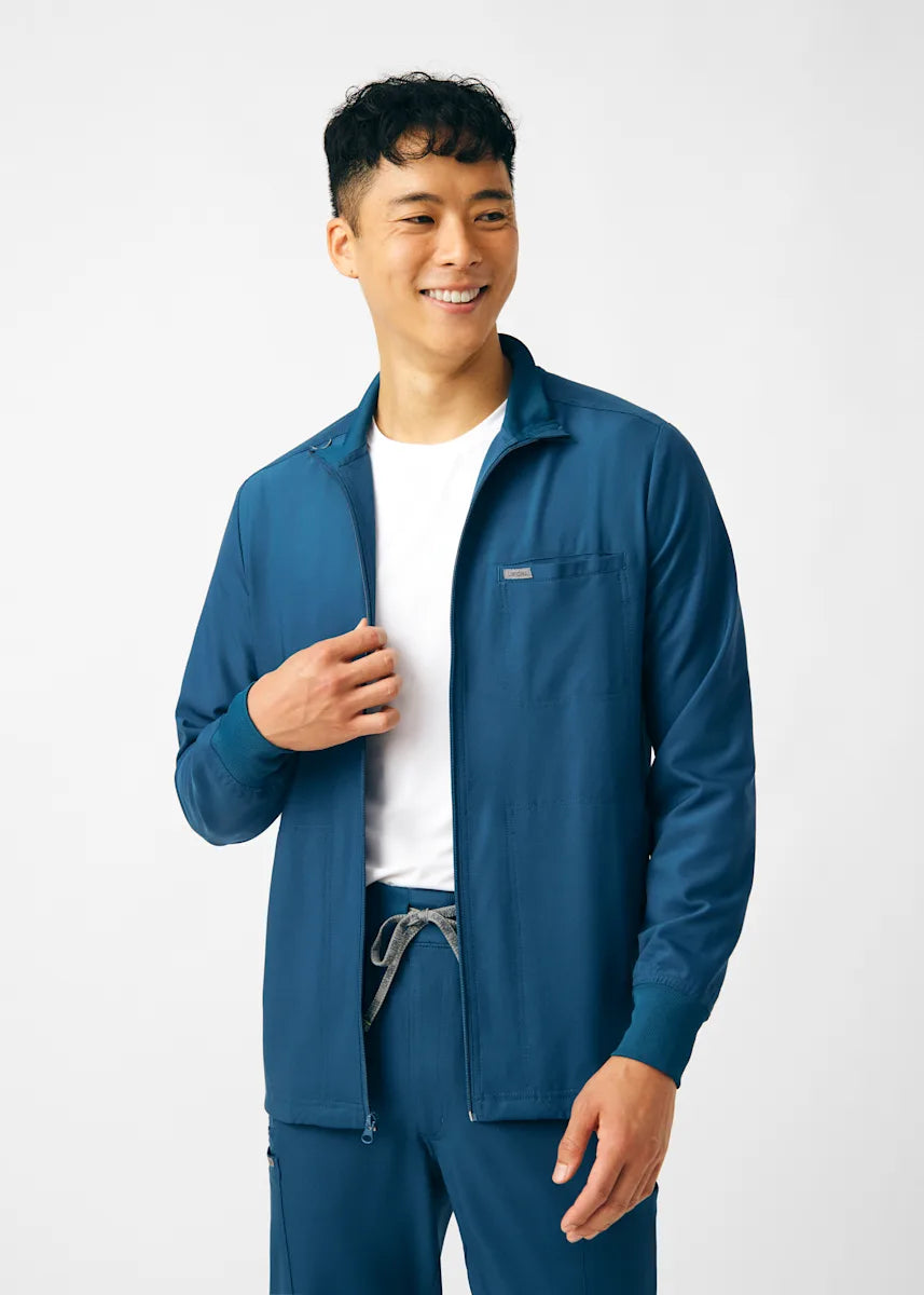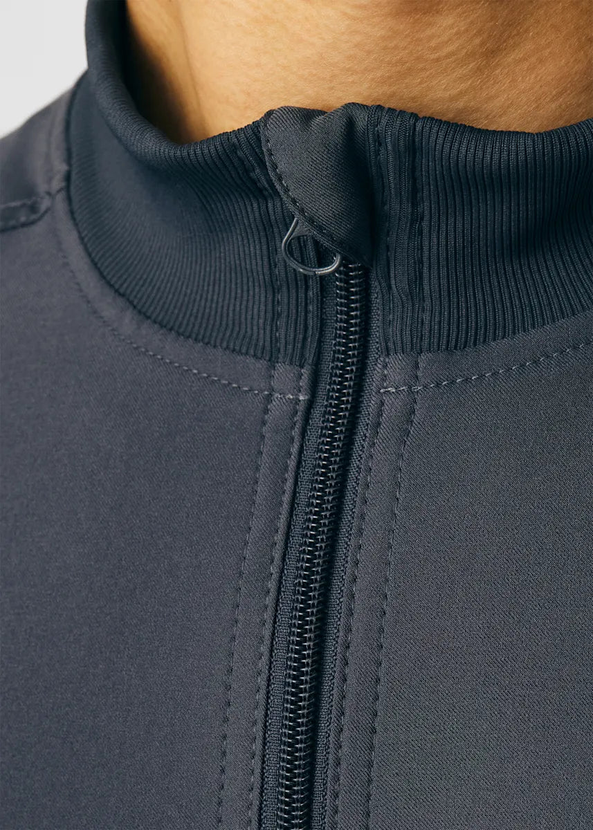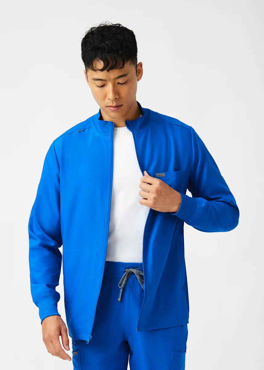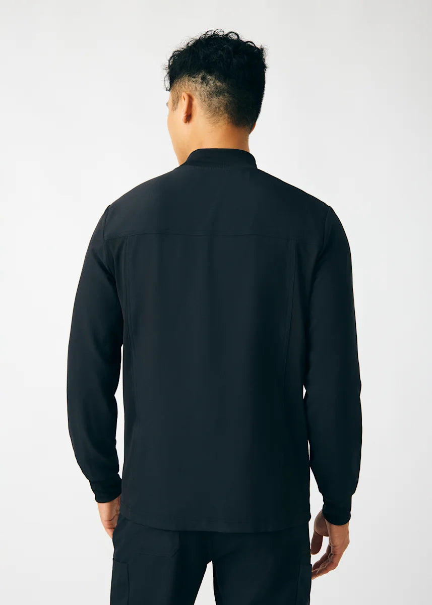 A Men's Fit zip front jacket that is not only comfortable, but will keep you warm all day. The rib knit mock neck collar, cuffs, and side panels offer a relaxed fit. Features ample amount of space for essential tools and accessories with 1 chest pocket, 2 large welt pockets, and an ID badge loop to keep your items organized. With all these features this jacket will become an essential item for your workday.