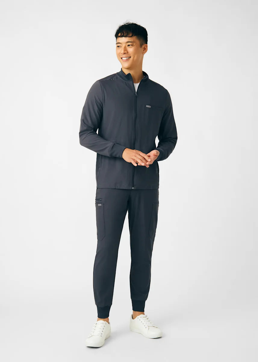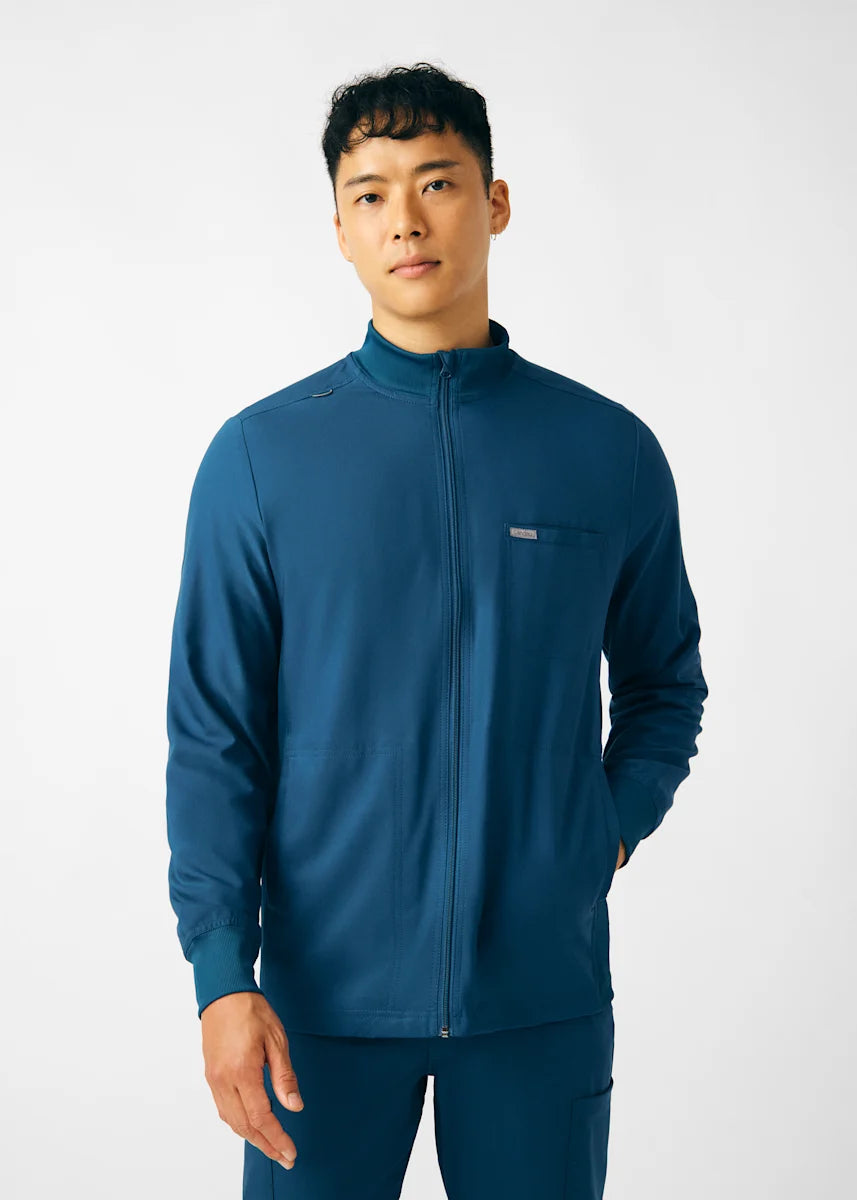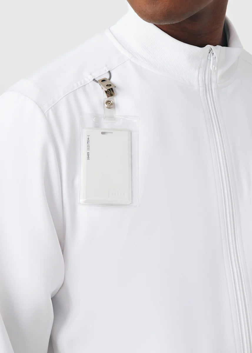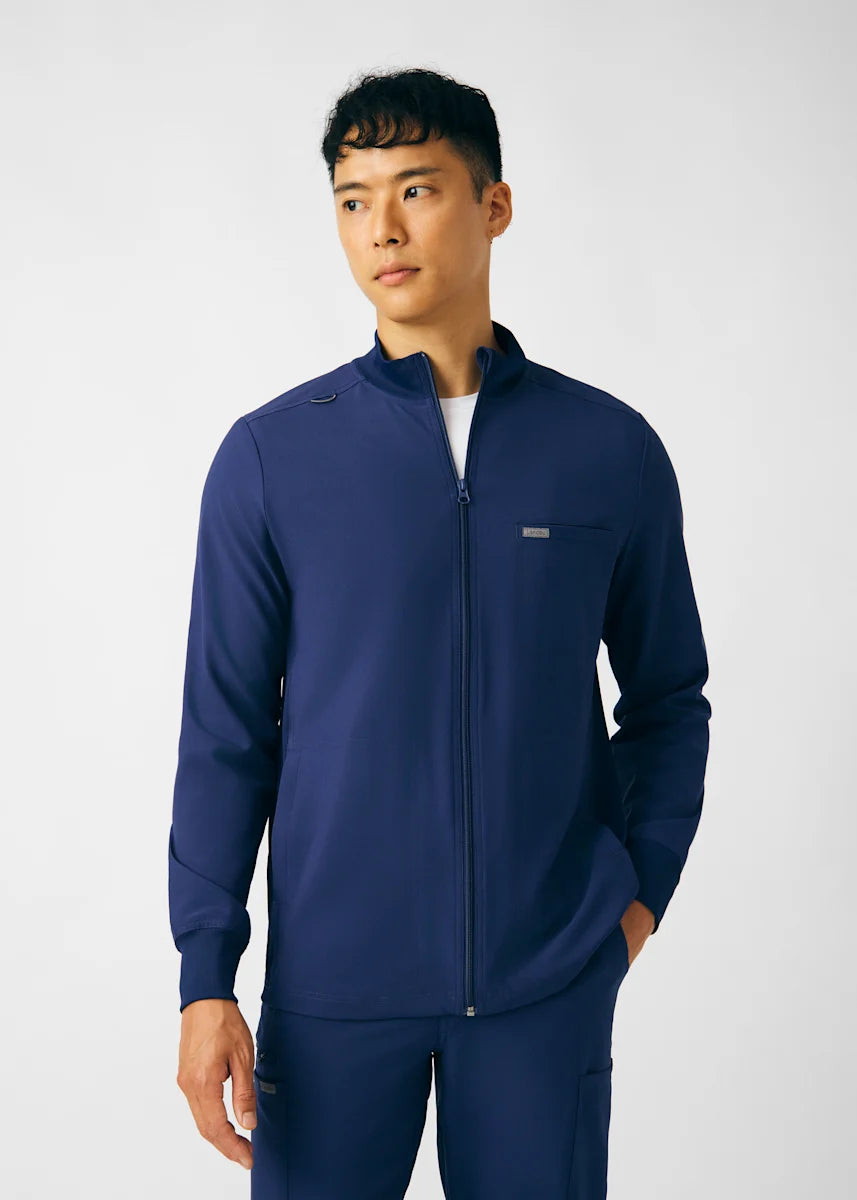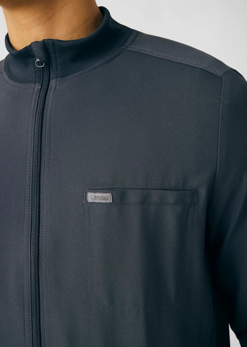 A Men's Fit zip front jacket that is not only comfortable, but will keep you warm all day. The rib knit mock neck collar, cuffs, and side panels offer a relaxed fit. Features ample amount of space for essential tools and accessories with 1 chest pocket, 2 large welt pockets, and an ID badge loop to keep your items organized. With all these features this jacket will become an essential item for your workday.