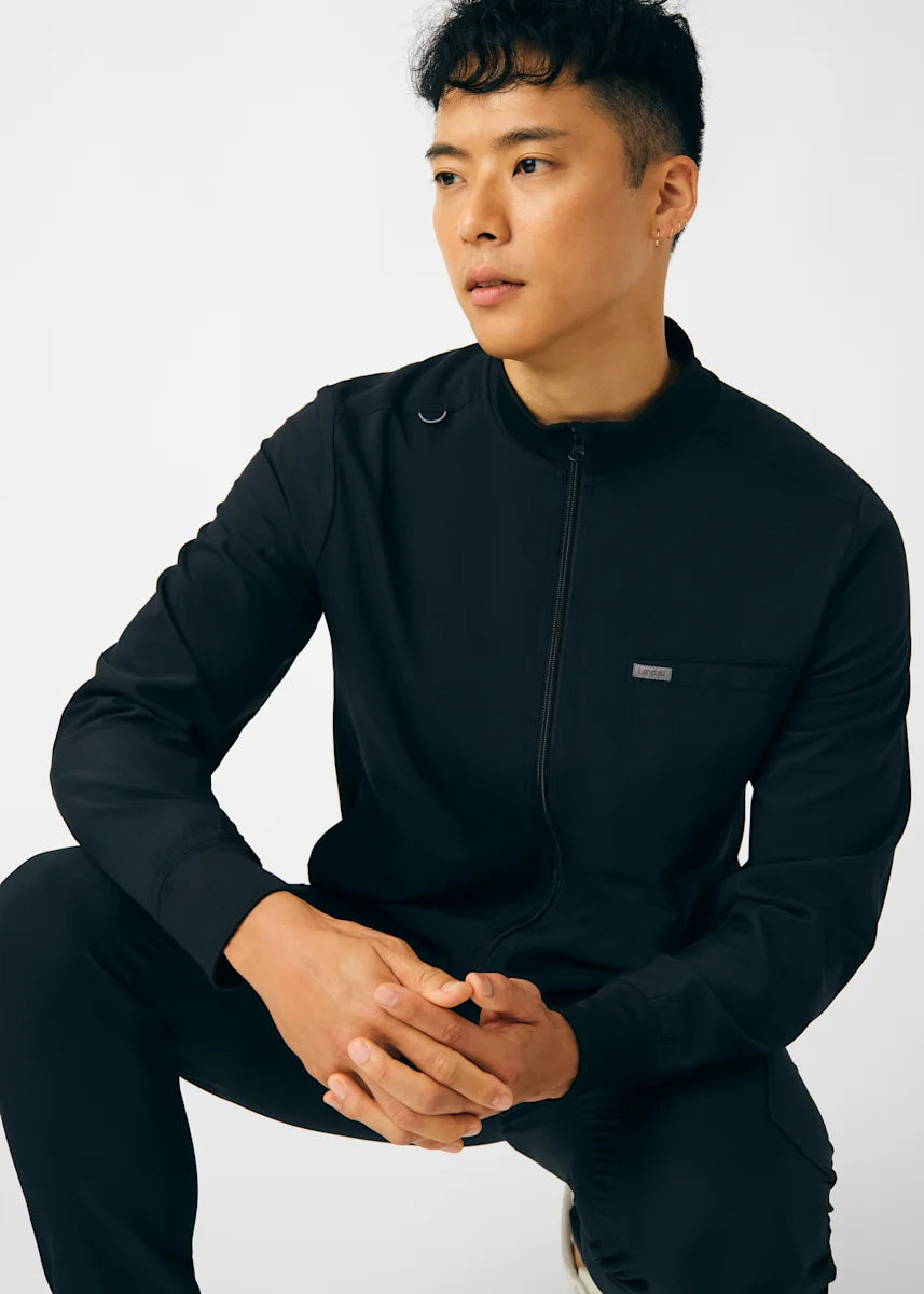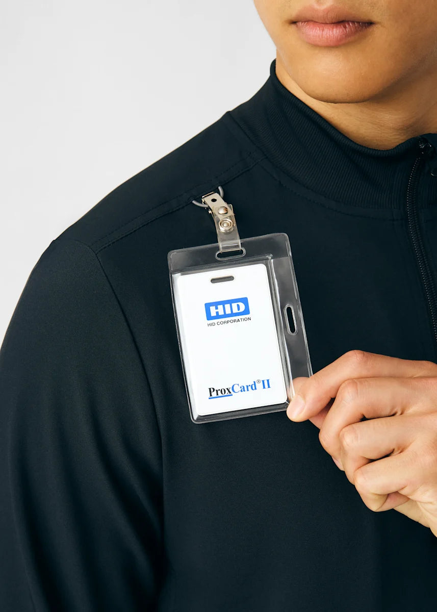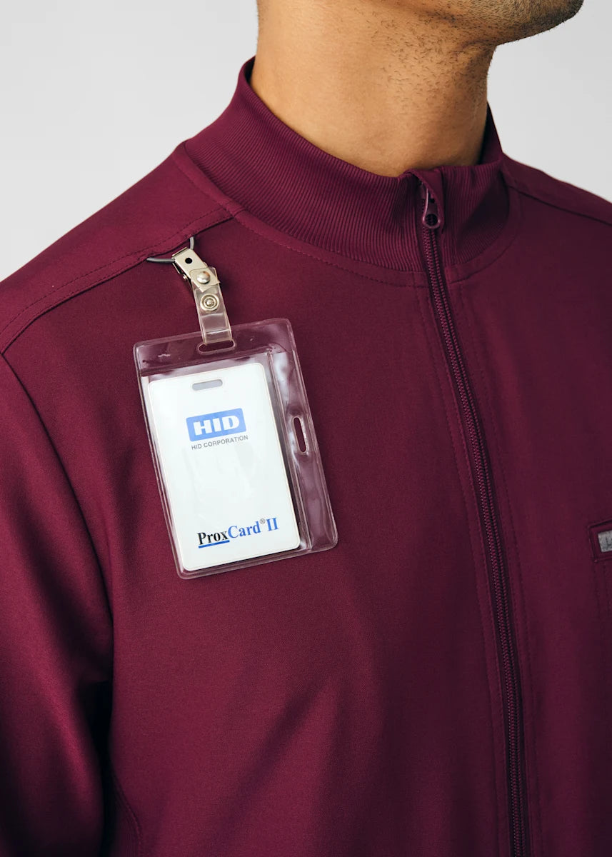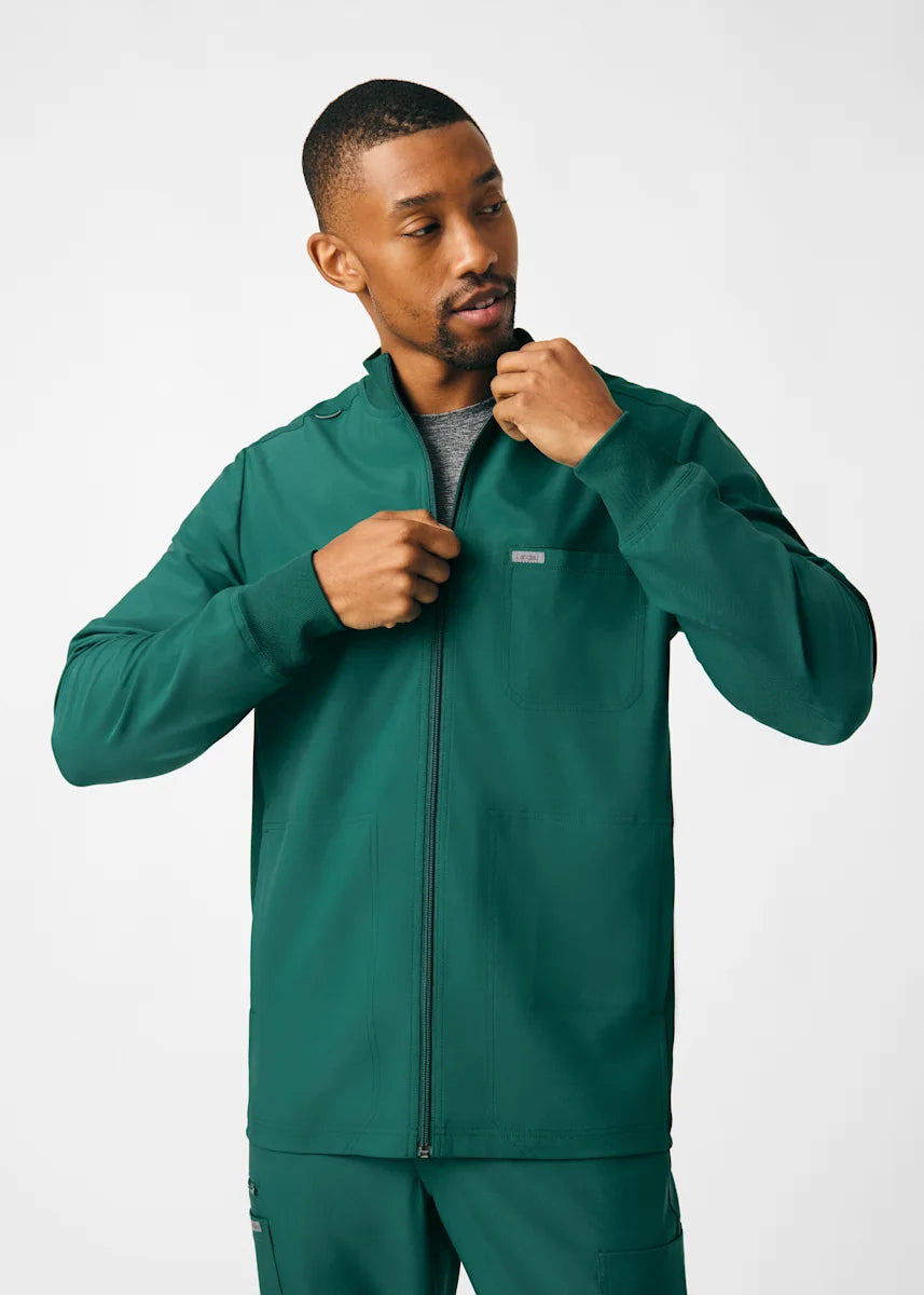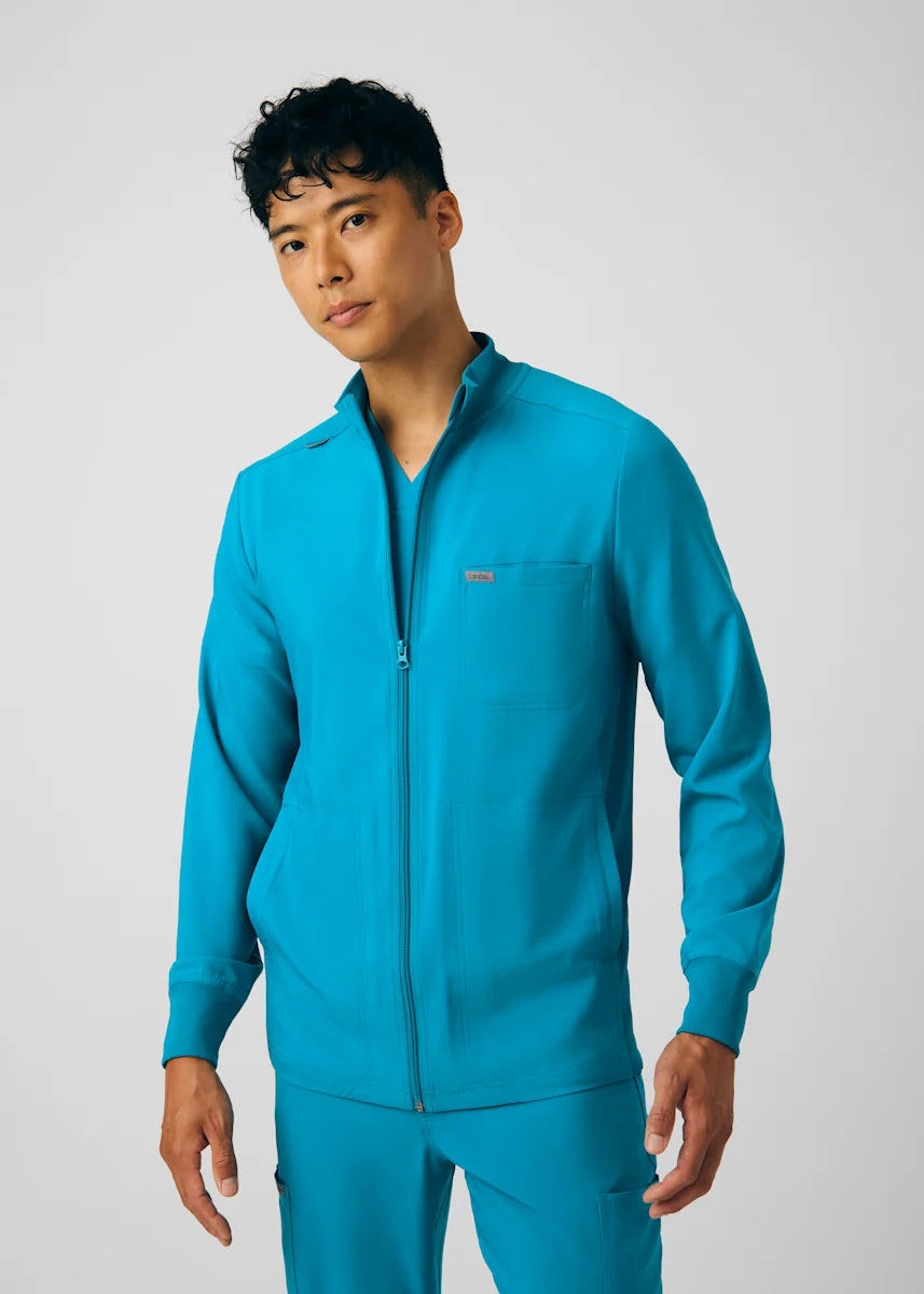 A Men's Fit zip front jacket that is not only comfortable, but will keep you warm all day. The rib knit mock neck collar, cuffs, and side panels offer a relaxed fit. Features ample amount of space for essential tools and accessories with 1 chest pocket, 2 large welt pockets, and an ID badge loop to keep your items organized. With all these features this jacket will become an essential item for your workday.