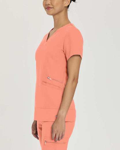 White Cross V-Tess Women's V-Neck Top With Zip Pocket