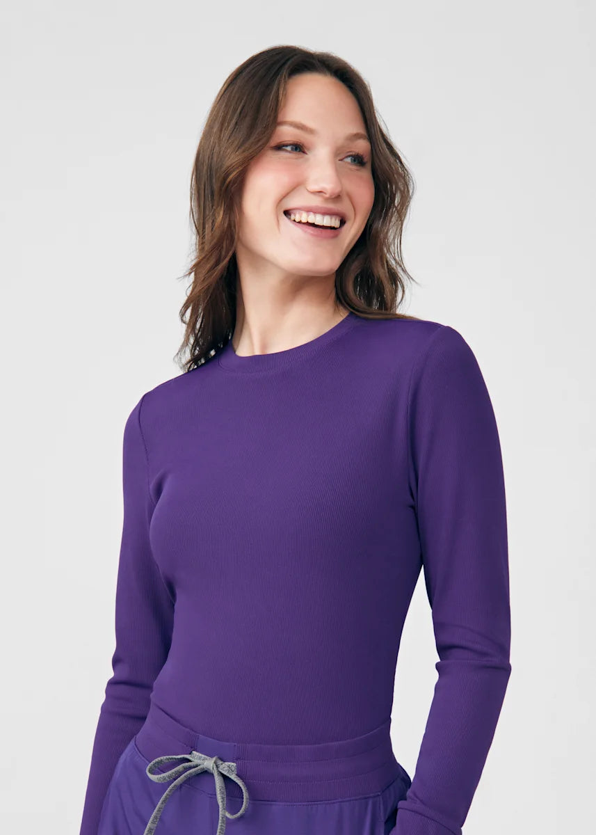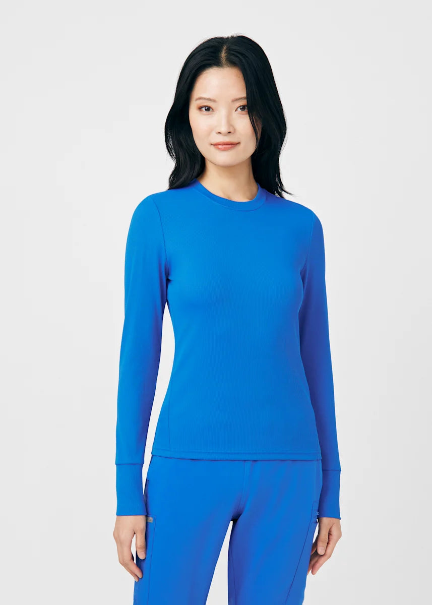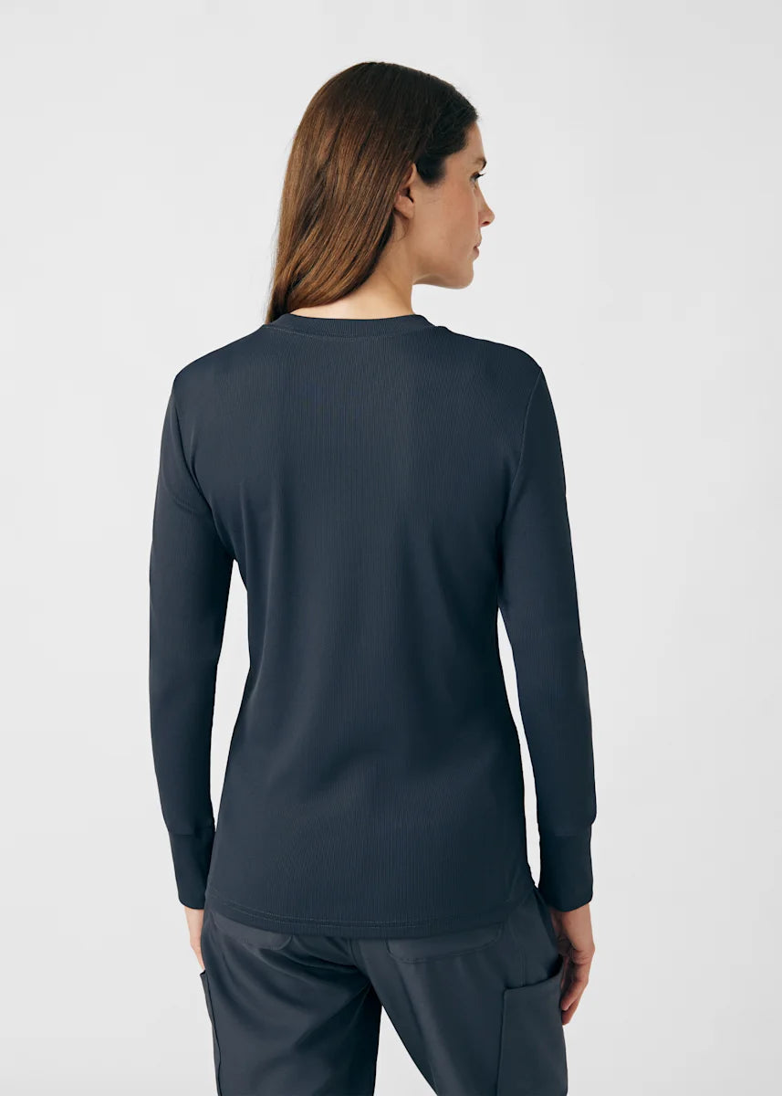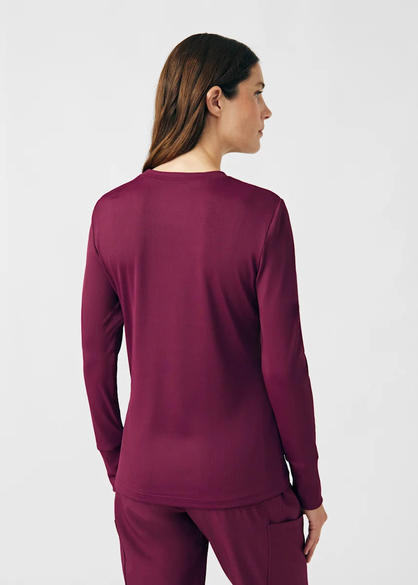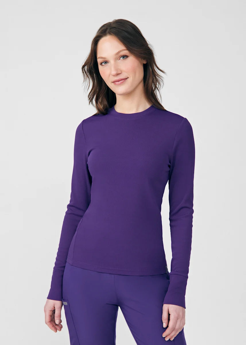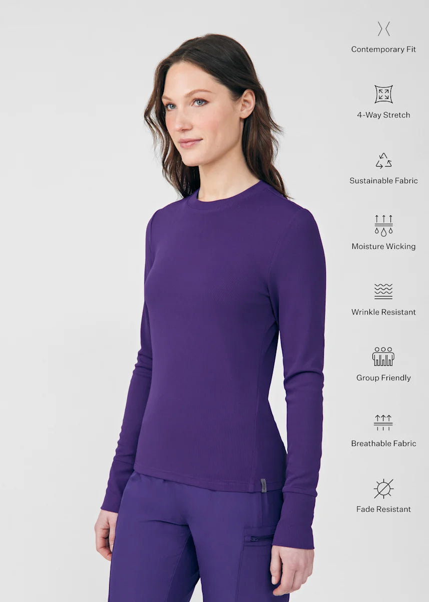 This contemporary layering underscrub tee is made with figure flattering rib knit with wrap-around side seams and a zipper pocket at the left cuff to keep your personal essentials safe. This long-sleeve tee is the perfect way to add warmth to your wardrobe when you're working in cold environments.