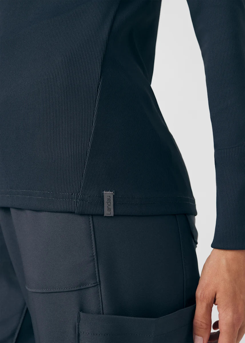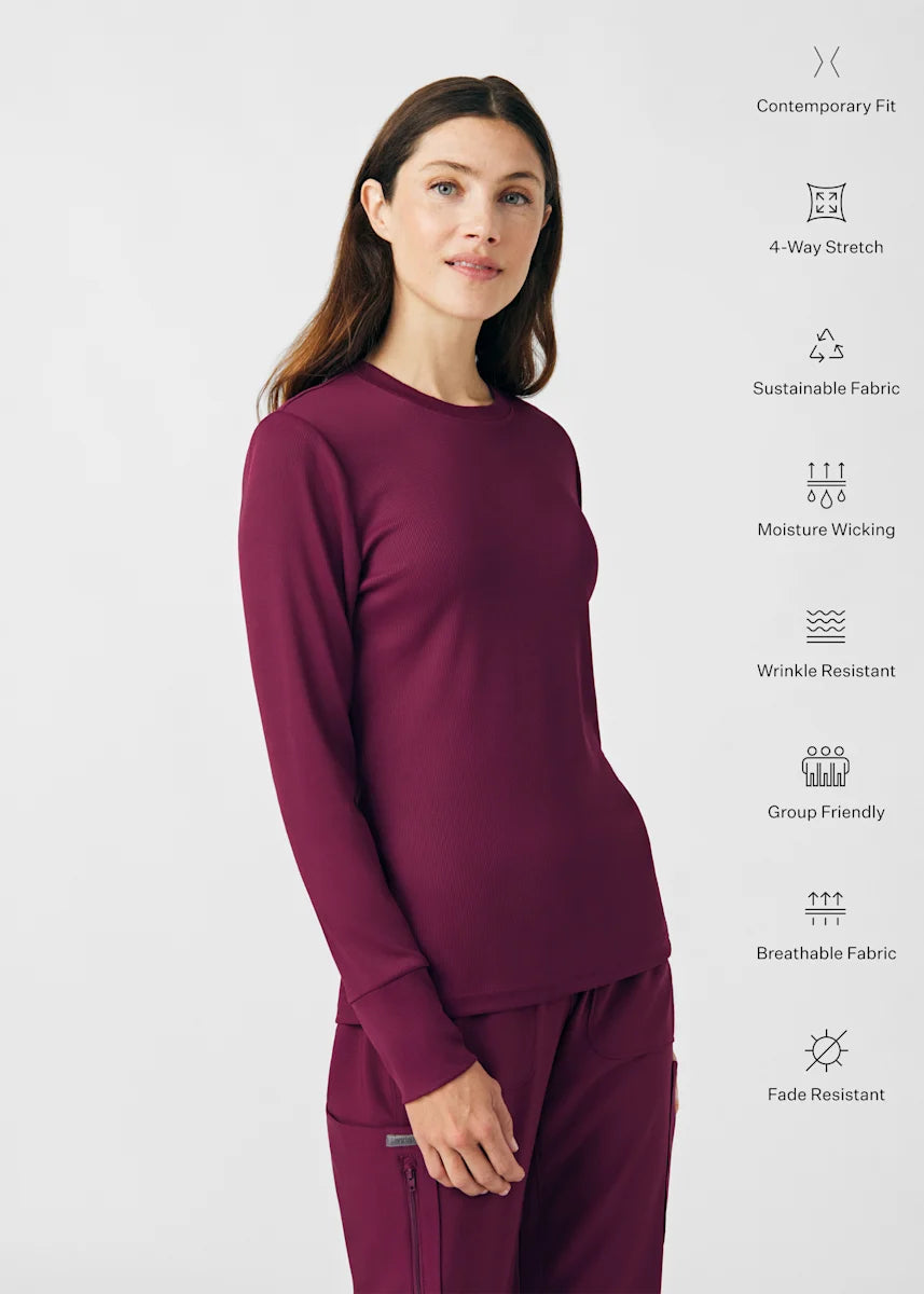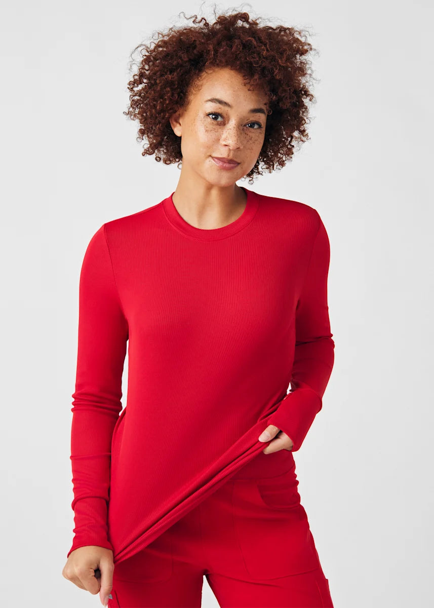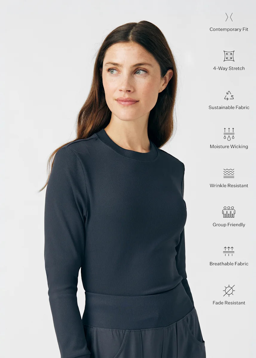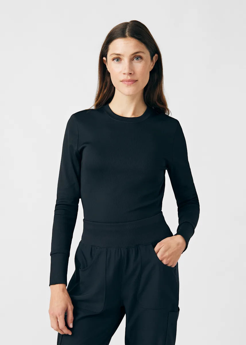 This contemporary layering underscrub tee is made with figure flattering rib knit with wrap-around side seams and a zipper pocket at the left cuff to keep your personal essentials safe. This long-sleeve tee is the perfect way to add warmth to your wardrobe when you're working in cold environments.