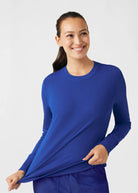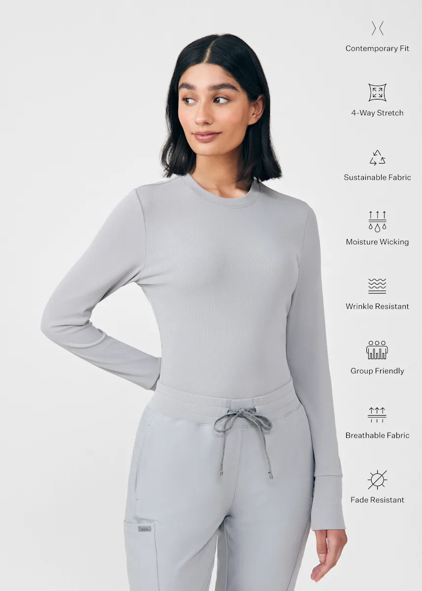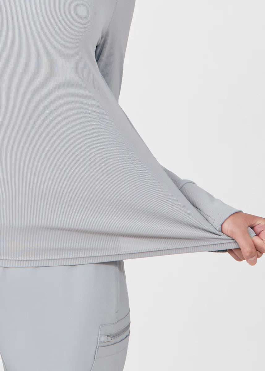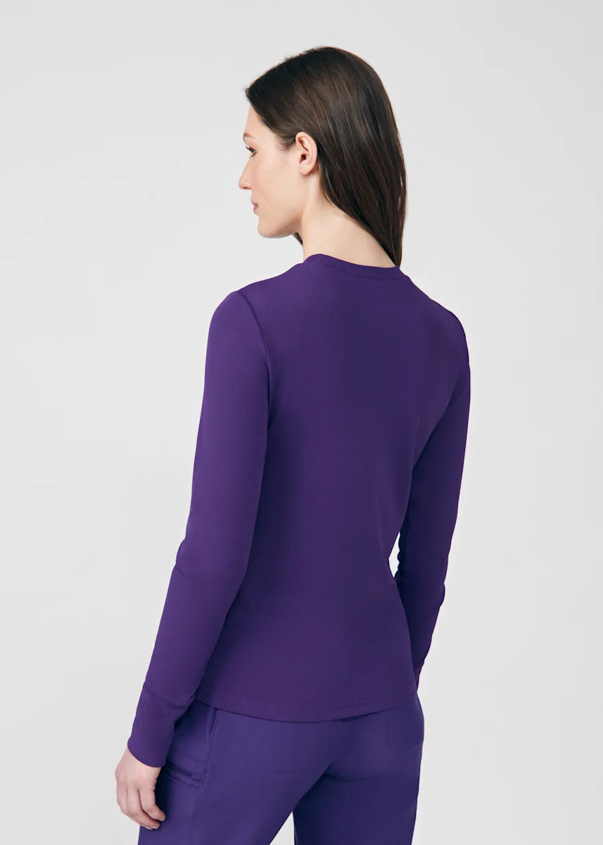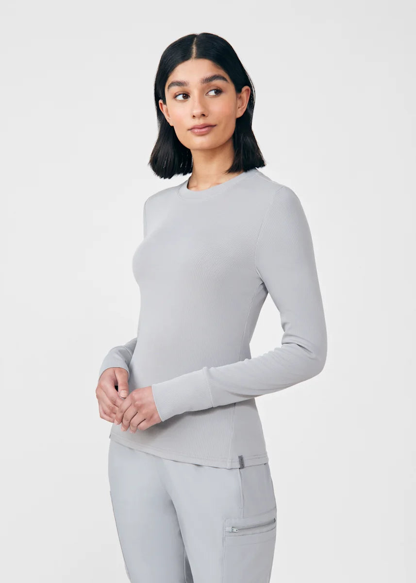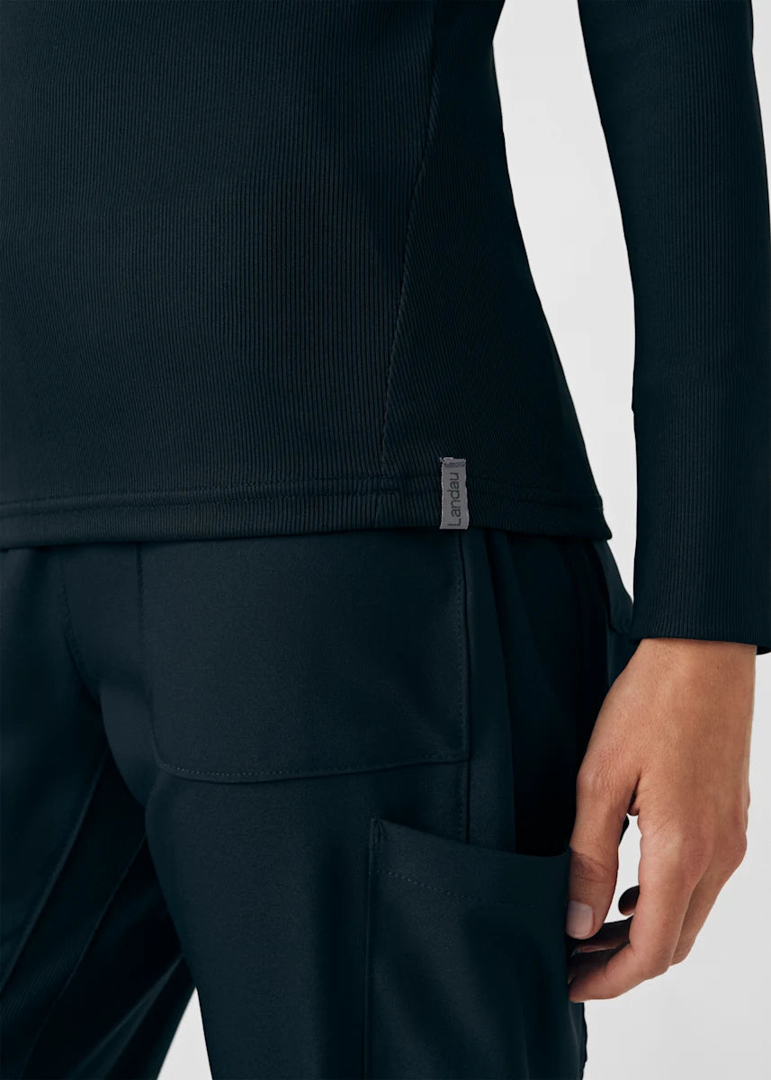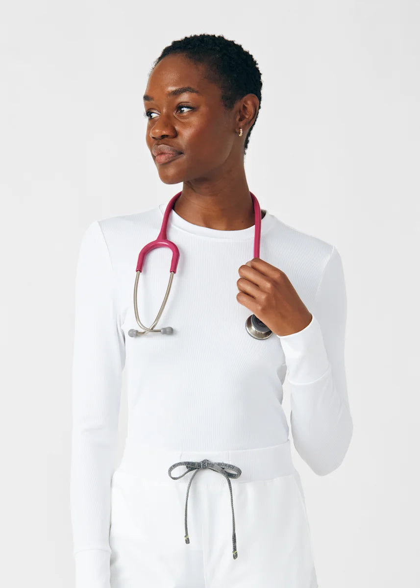 This contemporary layering underscrub tee is made with figure flattering rib knit with wrap-around side seams and a zipper pocket at the left cuff to keep your personal essentials safe. This long-sleeve tee is the perfect way to add warmth to your wardrobe when you're working in cold environments.