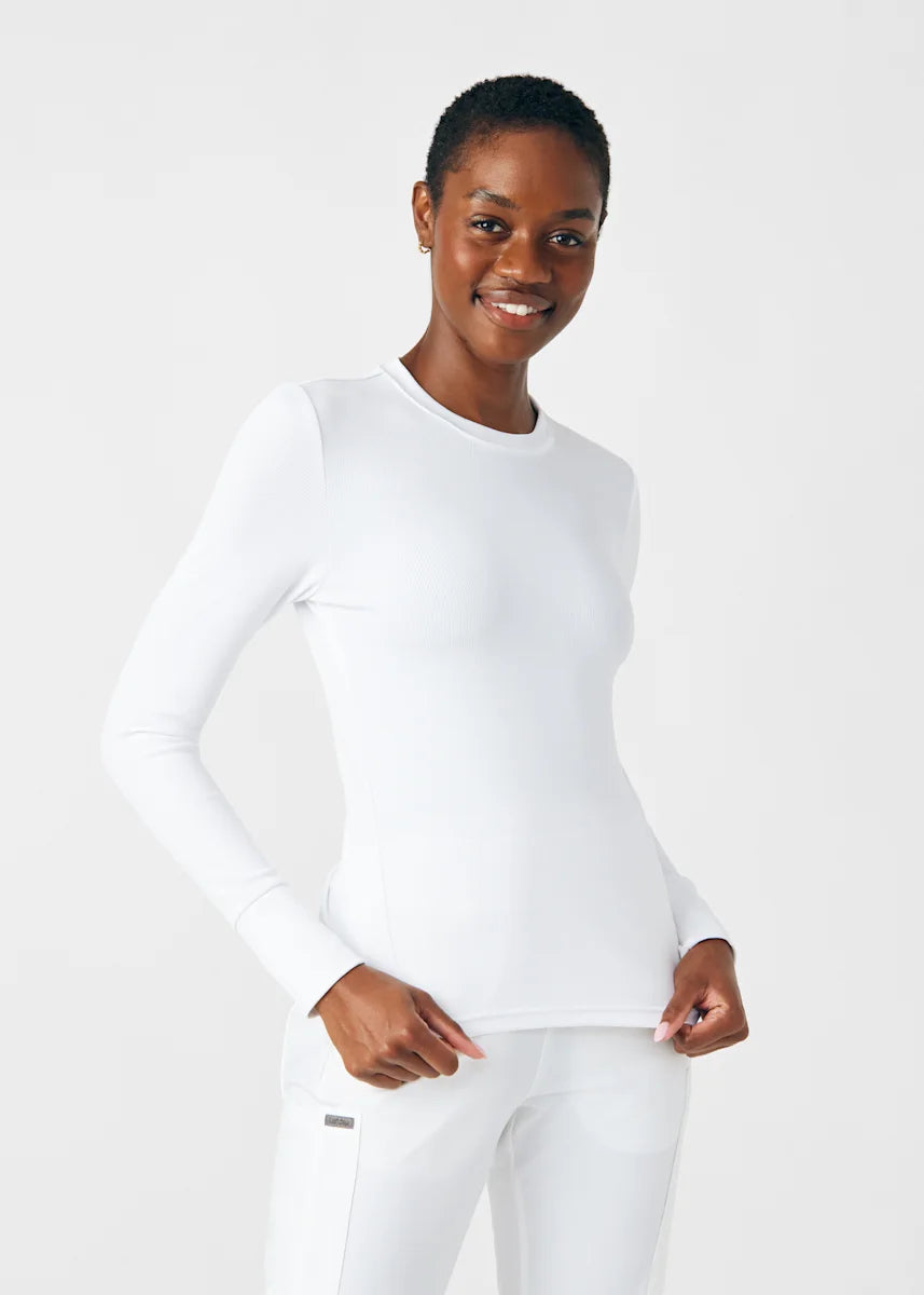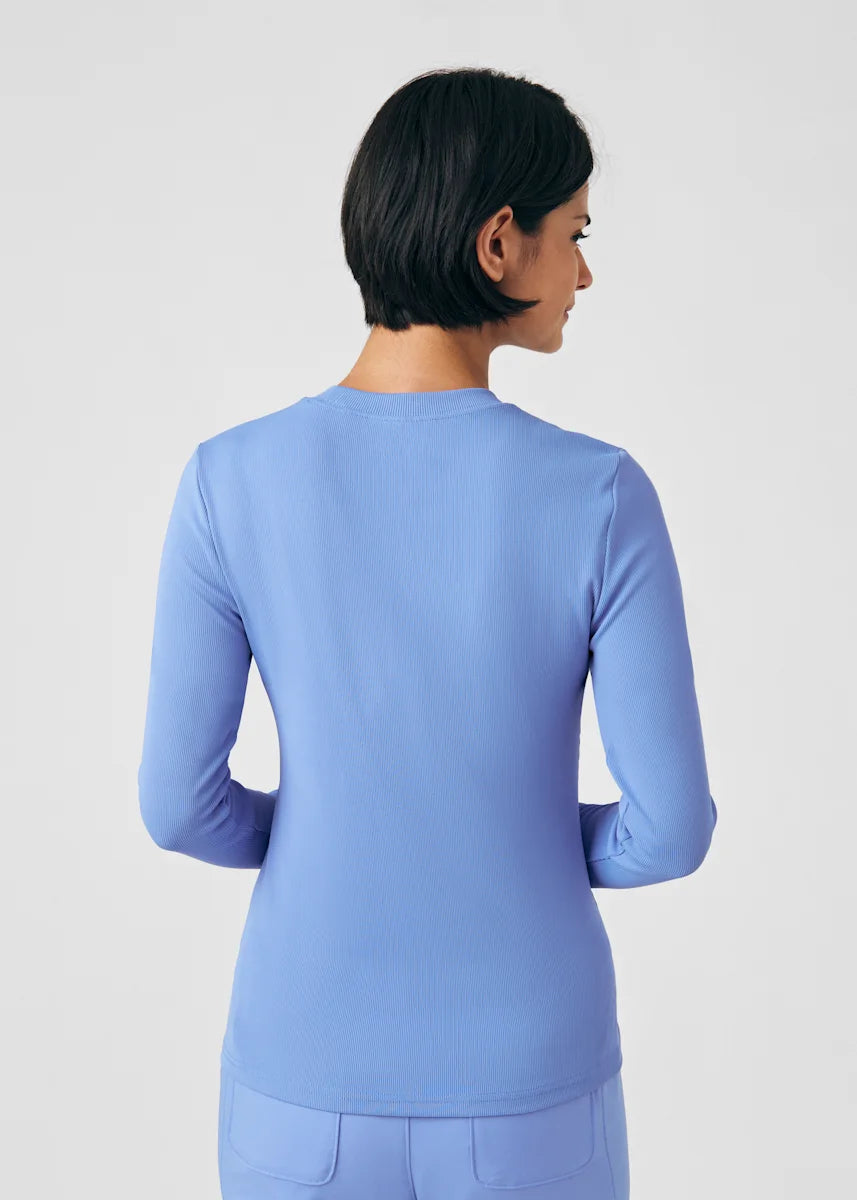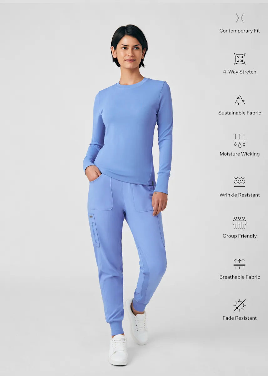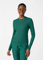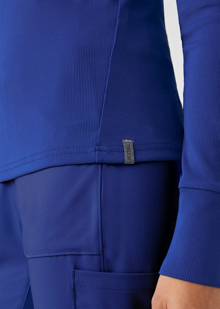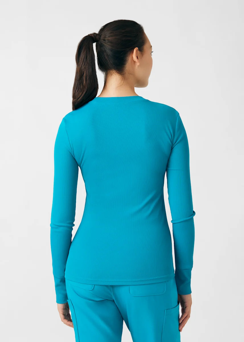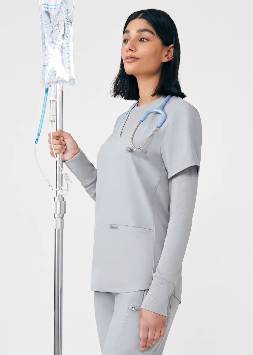This contemporary layering underscrub tee is made with figure flattering rib knit with wrap-around side seams and a zipper pocket at the left cuff to keep your personal essentials safe. This long-sleeve tee is the perfect way to add warmth to your wardrobe when you're working in cold environments.
