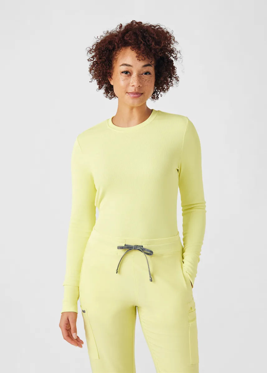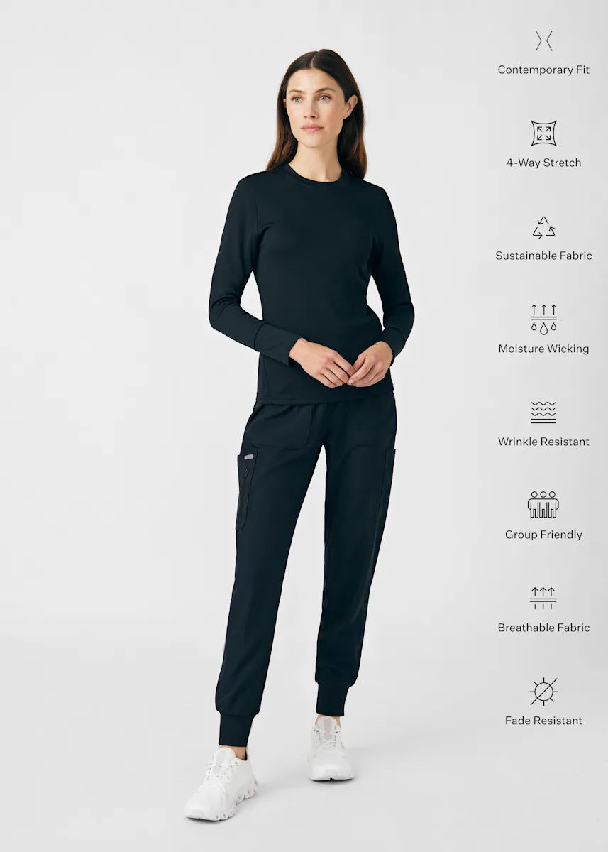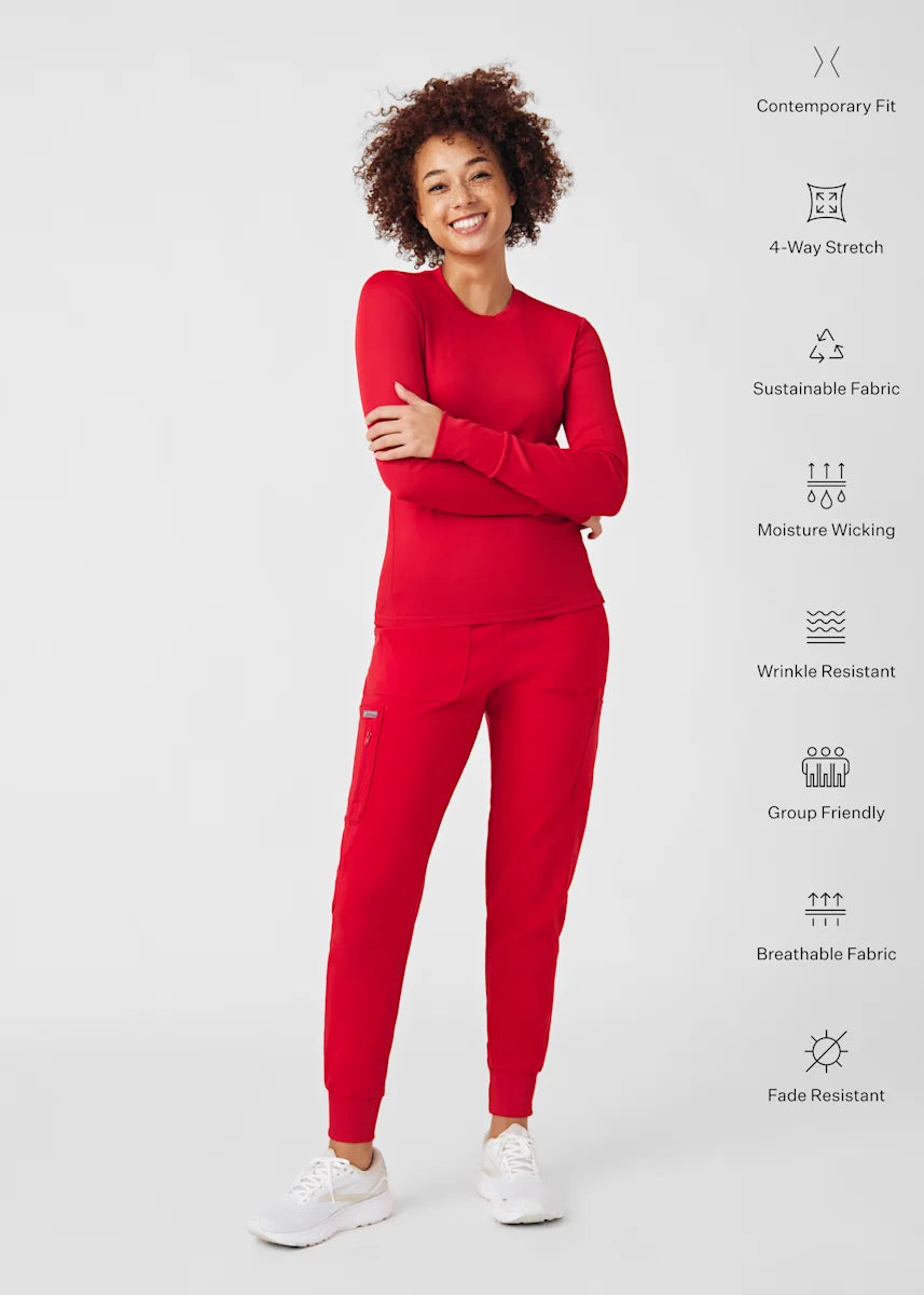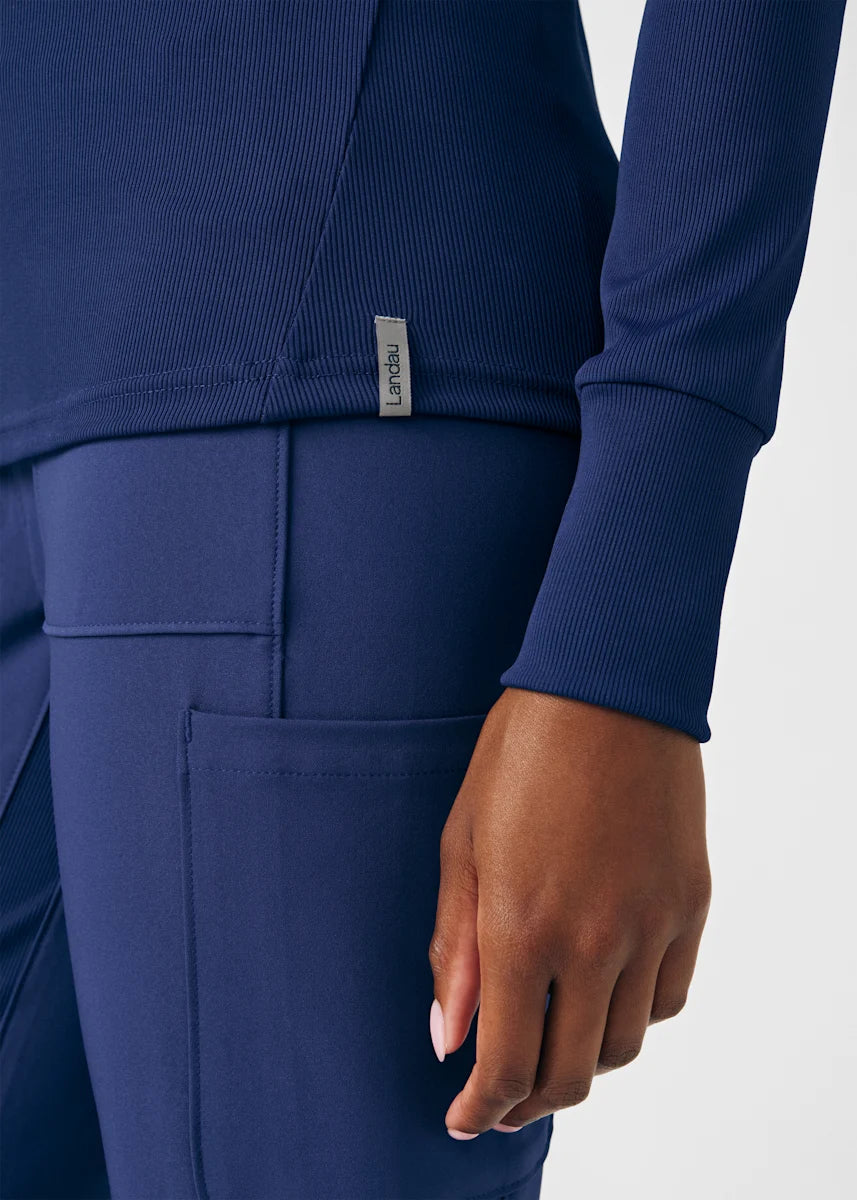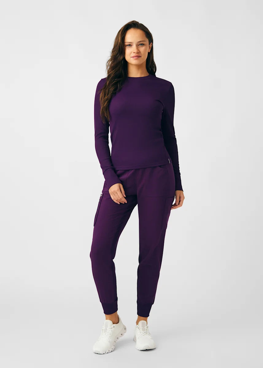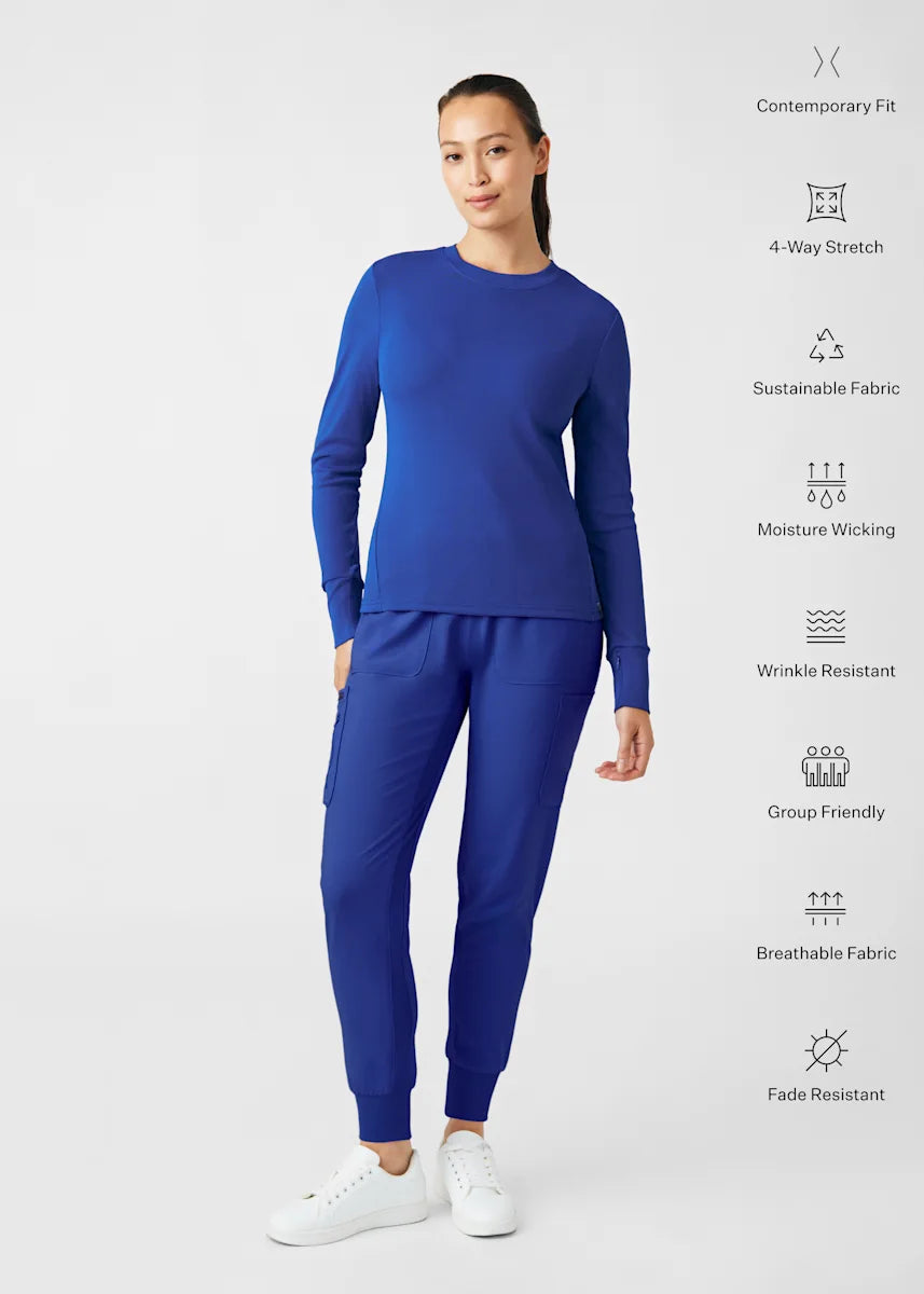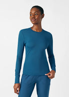 This contemporary layering underscrub tee is made with figure flattering rib knit with wrap-around side seams and a zipper pocket at the left cuff to keep your personal essentials safe. This long-sleeve tee is the perfect way to add warmth to your wardrobe when you're working in cold environments.