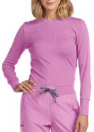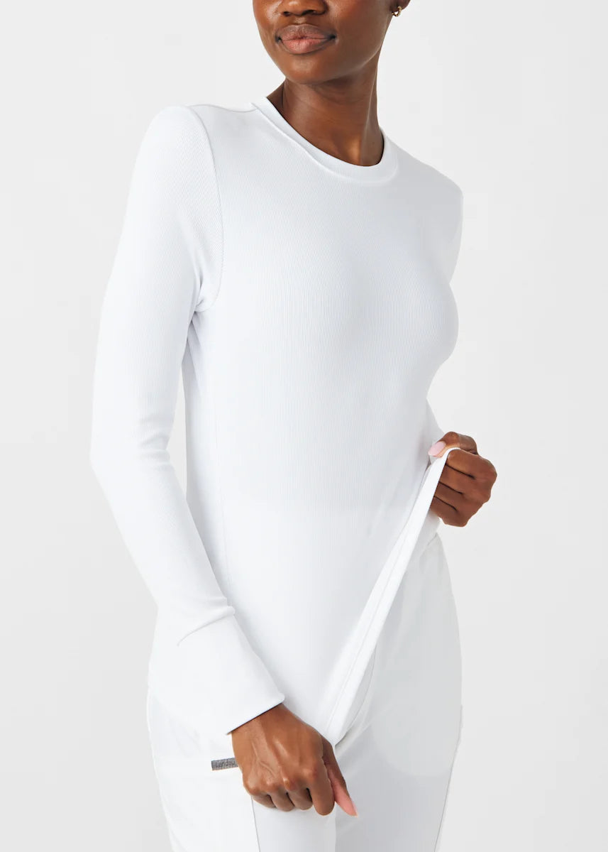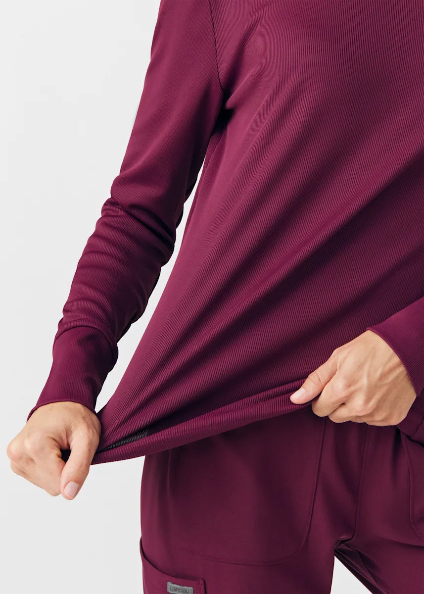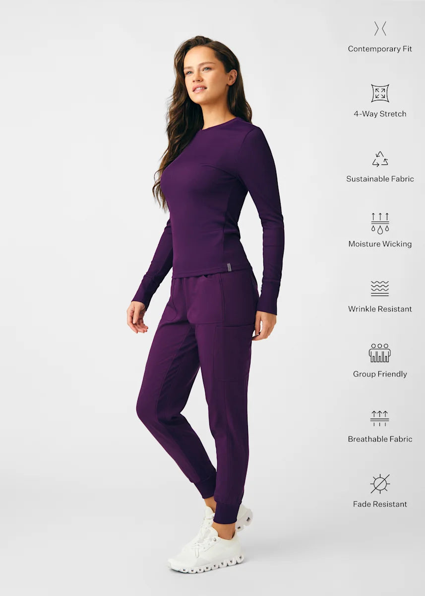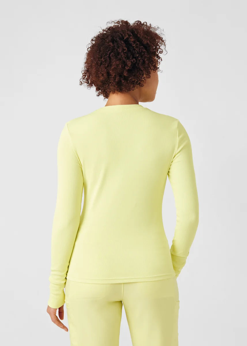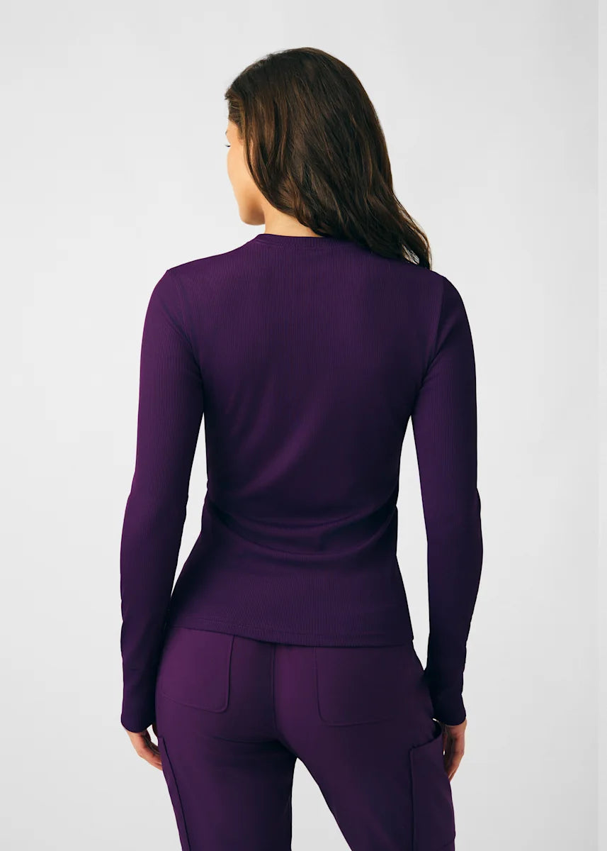 This contemporary layering underscrub tee is made with figure flattering rib knit with wrap-around side seams and a zipper pocket at the left cuff to keep your personal essentials safe. This long-sleeve tee is the perfect way to add warmth to your wardrobe when you're working in cold environments.
