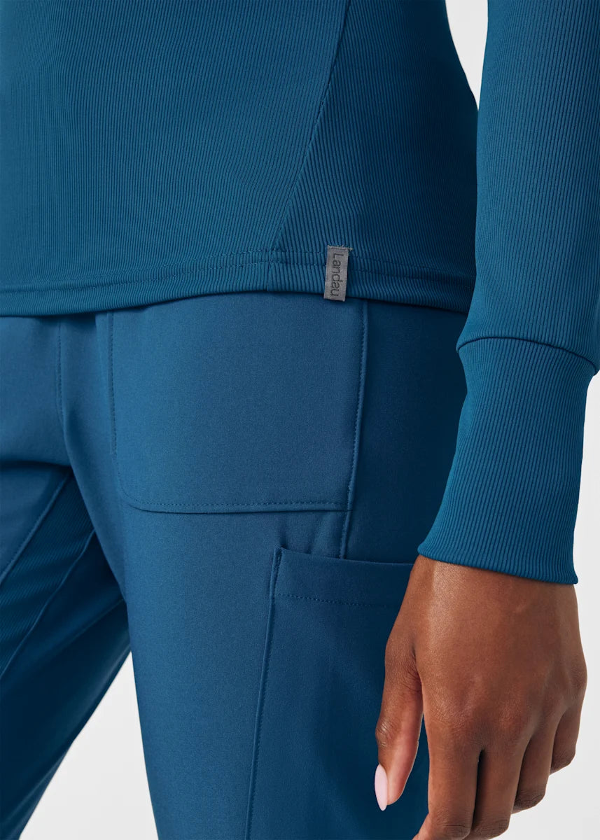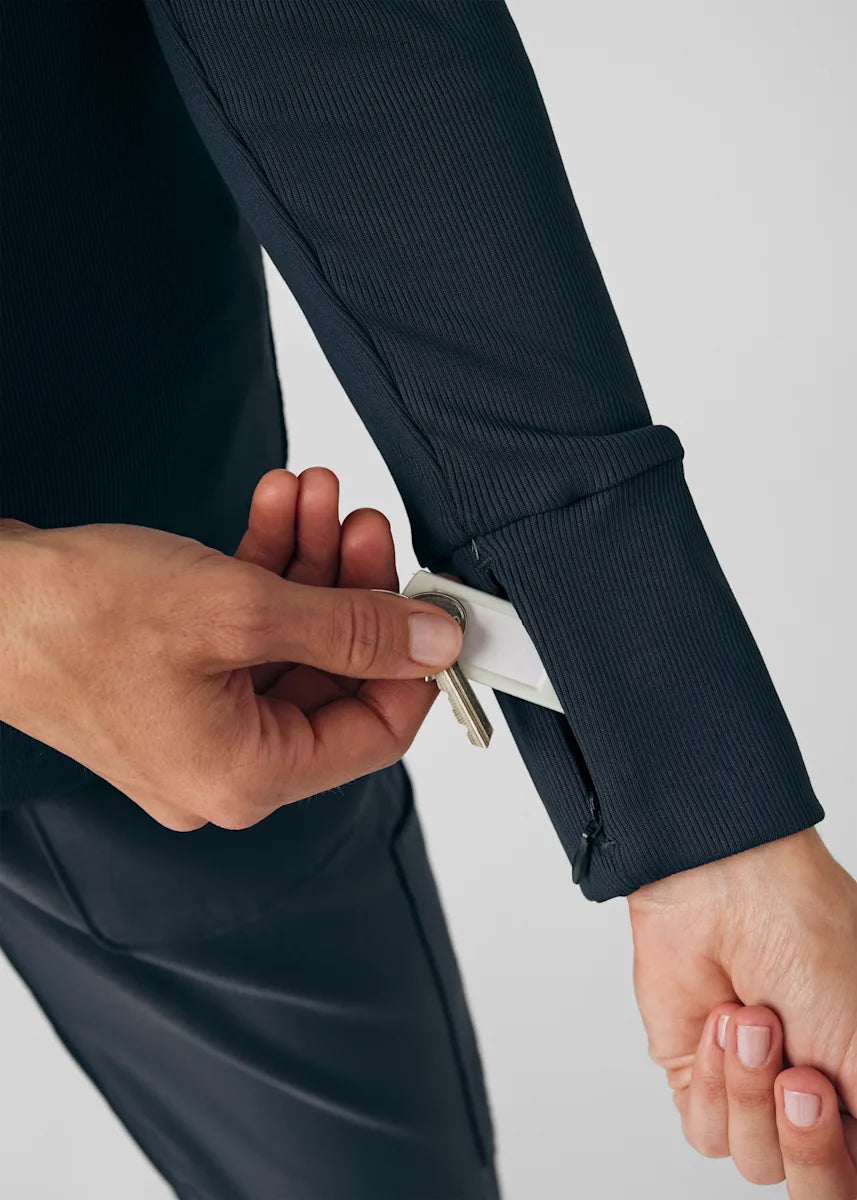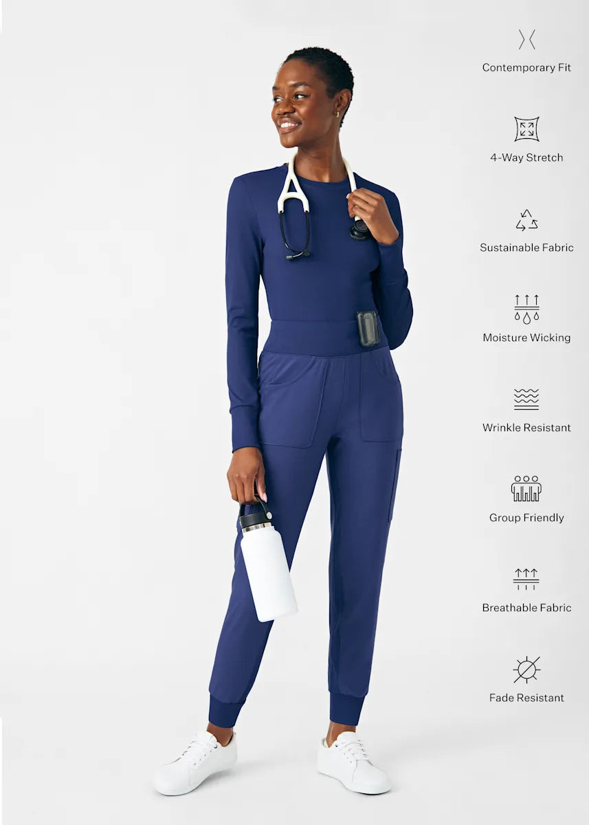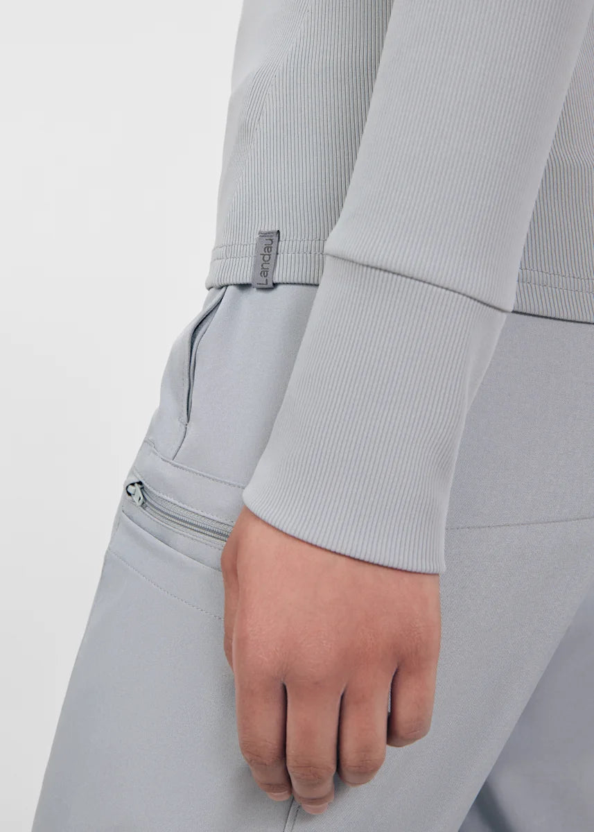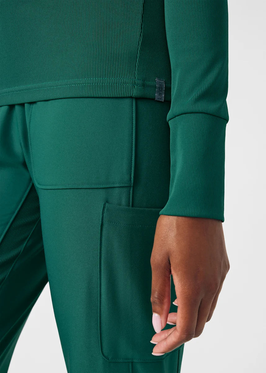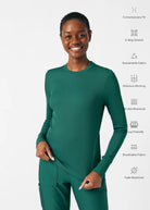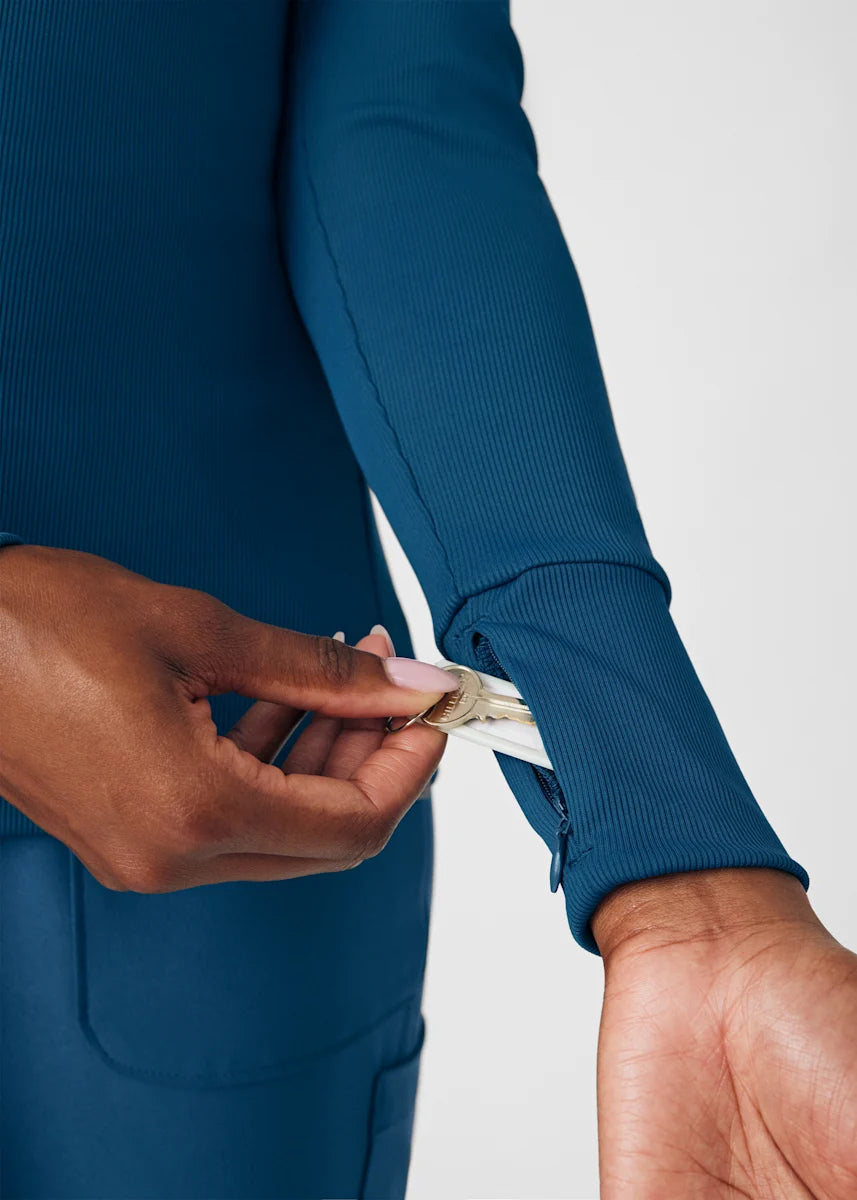 This contemporary layering underscrub tee is made with figure flattering rib knit with wrap-around side seams and a zipper pocket at the left cuff to keep your personal essentials safe. This long-sleeve tee is the perfect way to add warmth to your wardrobe when you're working in cold environments.
