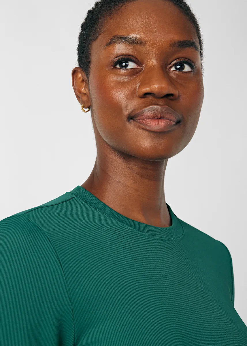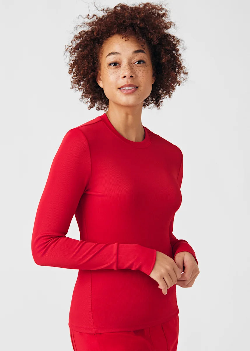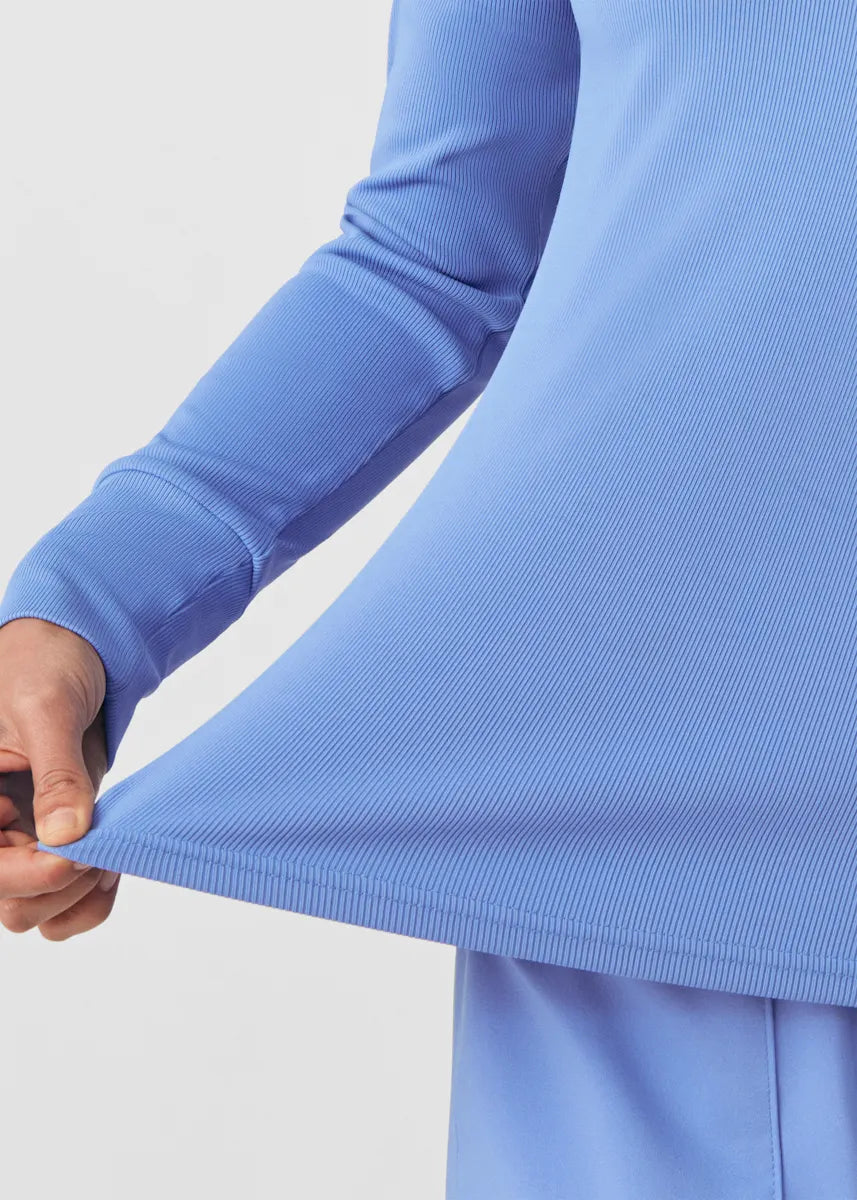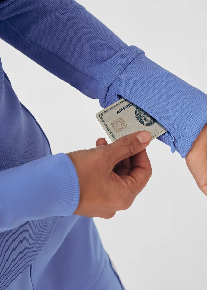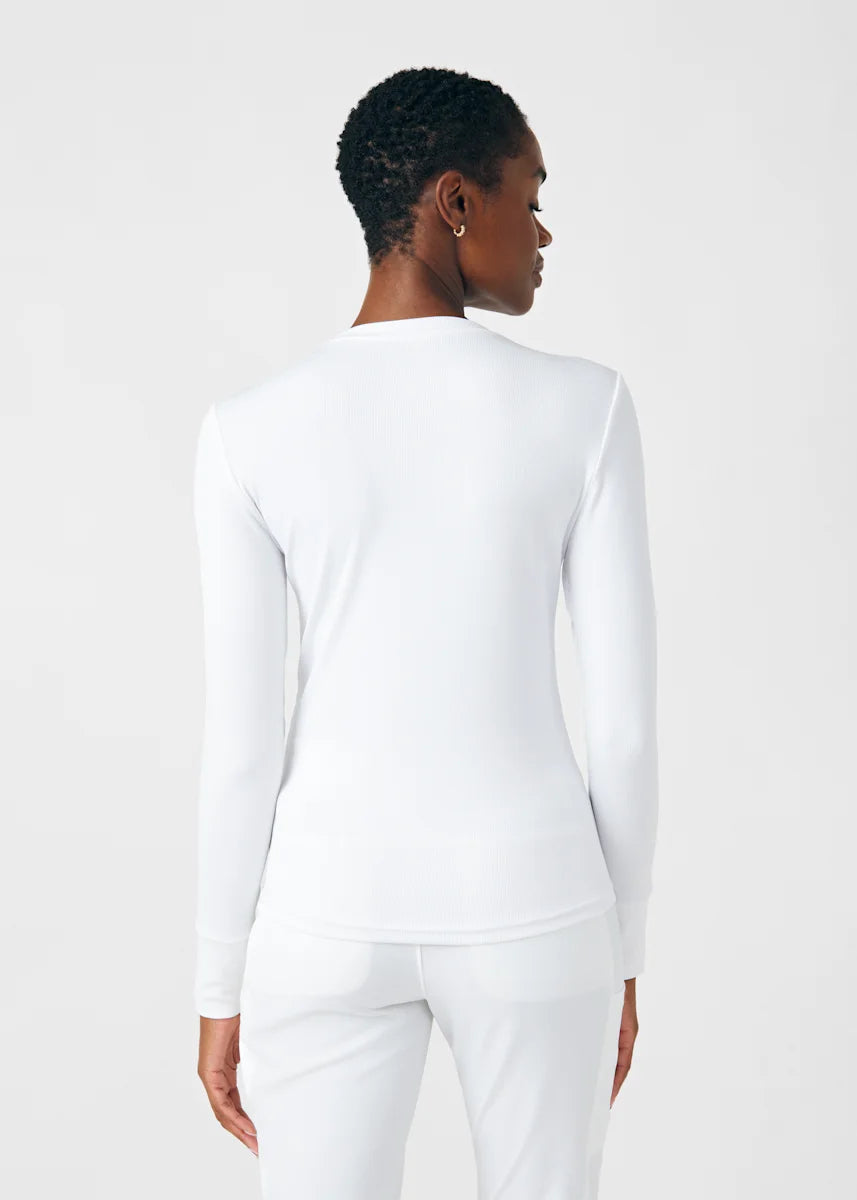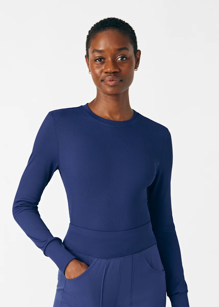 This contemporary layering underscrub tee is made with figure flattering rib knit with wrap-around side seams and a zipper pocket at the left cuff to keep your personal essentials safe. This long-sleeve tee is the perfect way to add warmth to your wardrobe when you're working in cold environments.