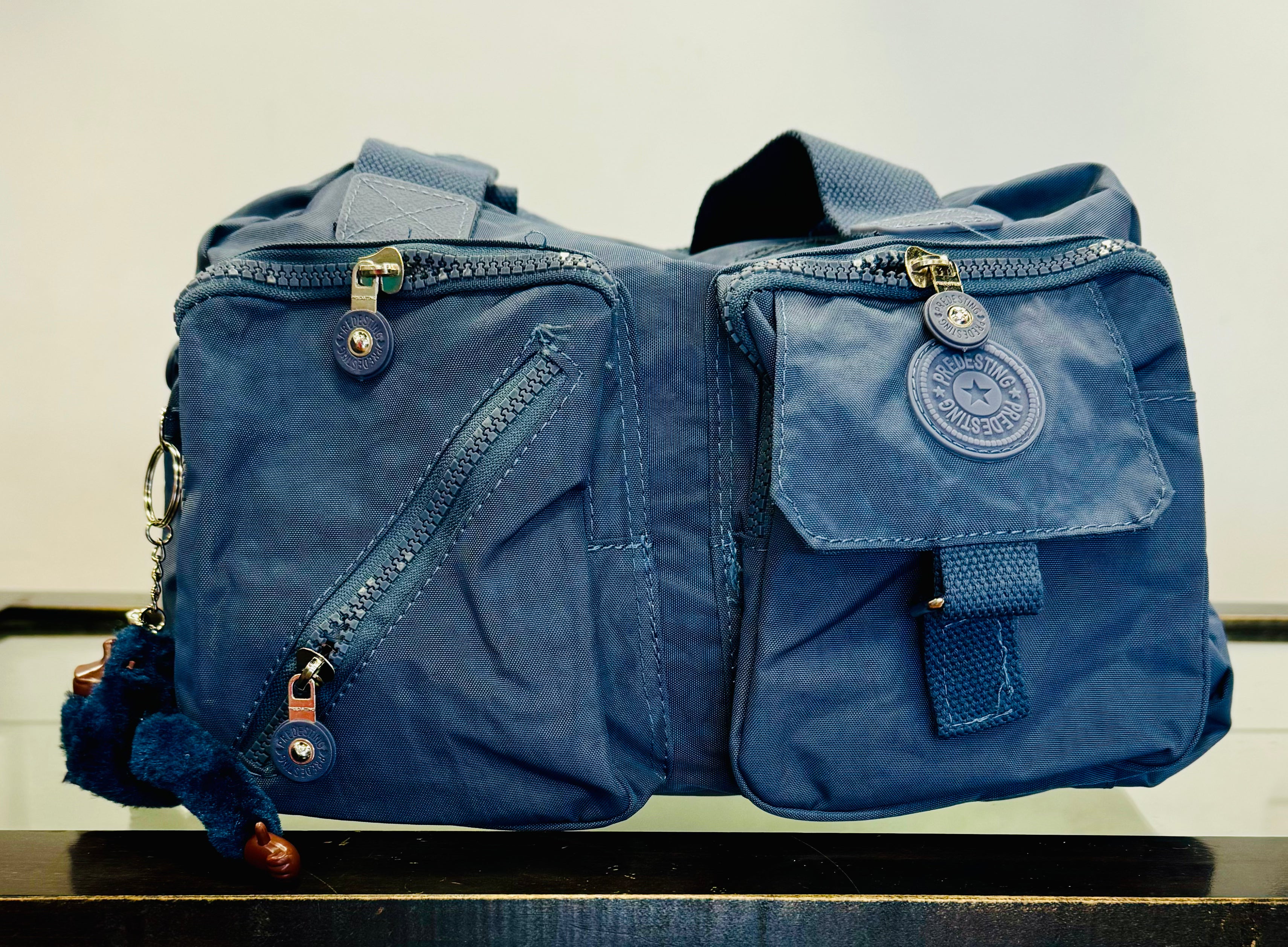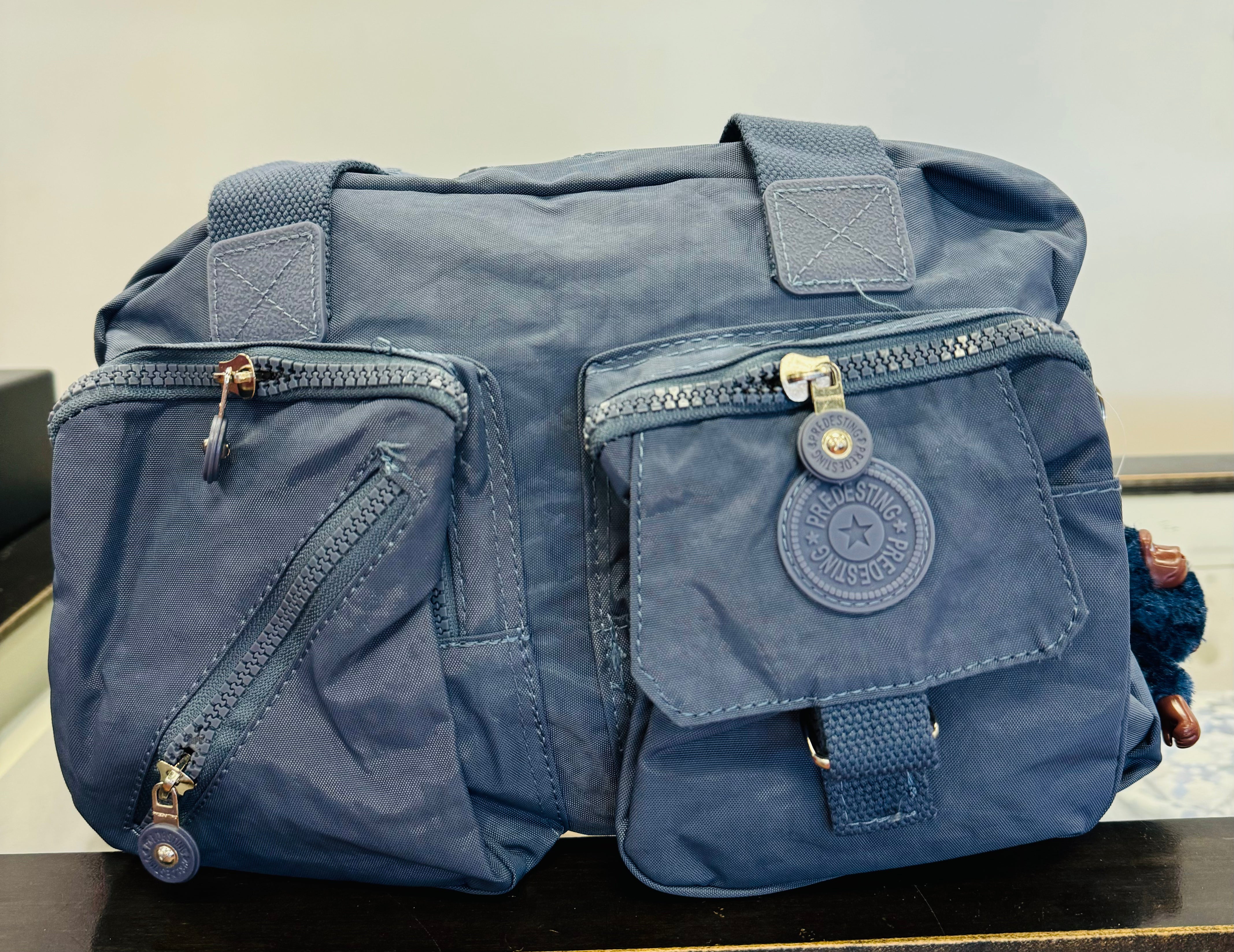Hand bag with zipper and monkey keychain, comes in different colors and 7 or more different openings to fit all your essential belongings. Light weighted and easy to carry to work or for every day errands. It also comes with an extra sling strap, which is easy attachable and can be carried in different ways.