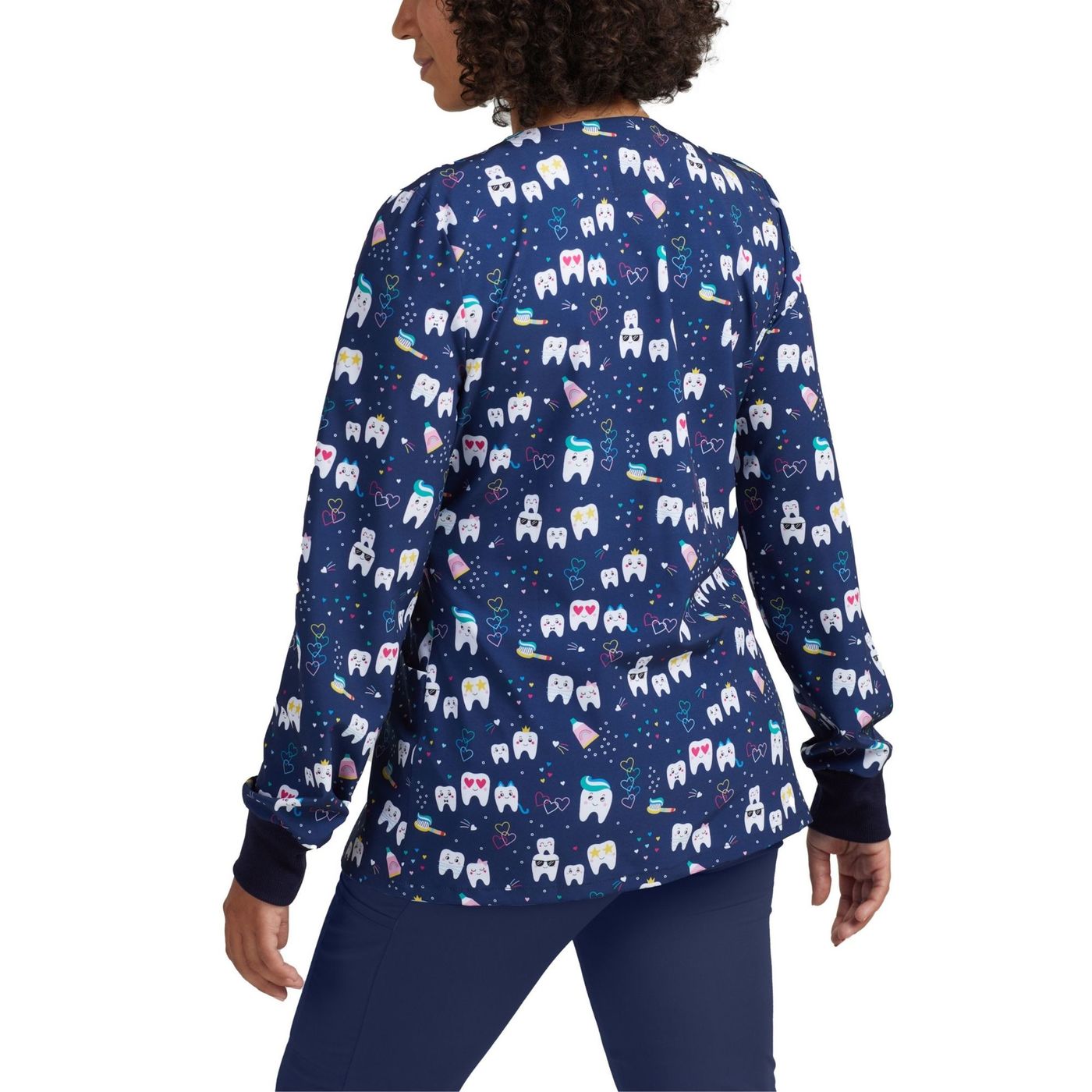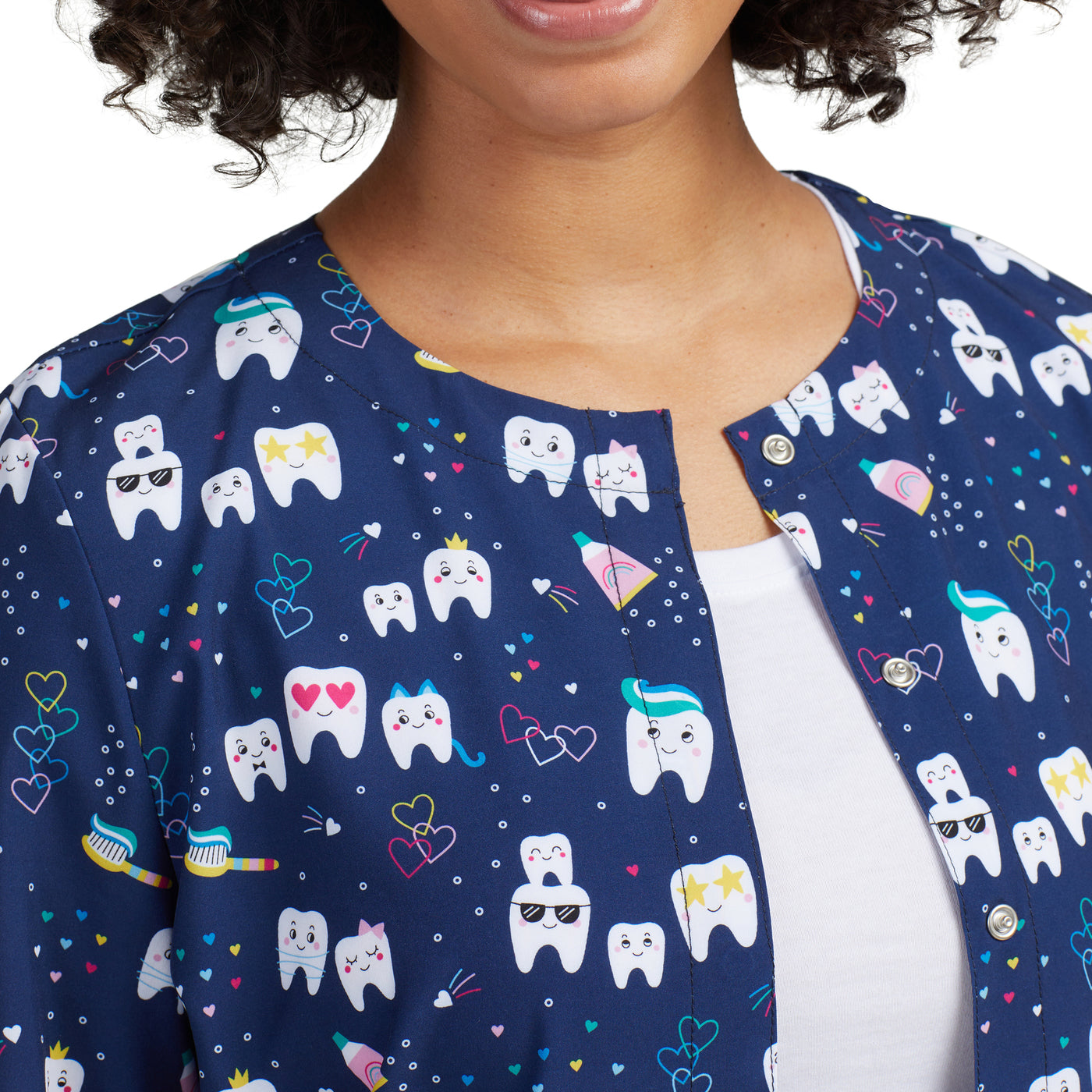 White Cross Dental Inspired Printed Scrub Jacket for Women